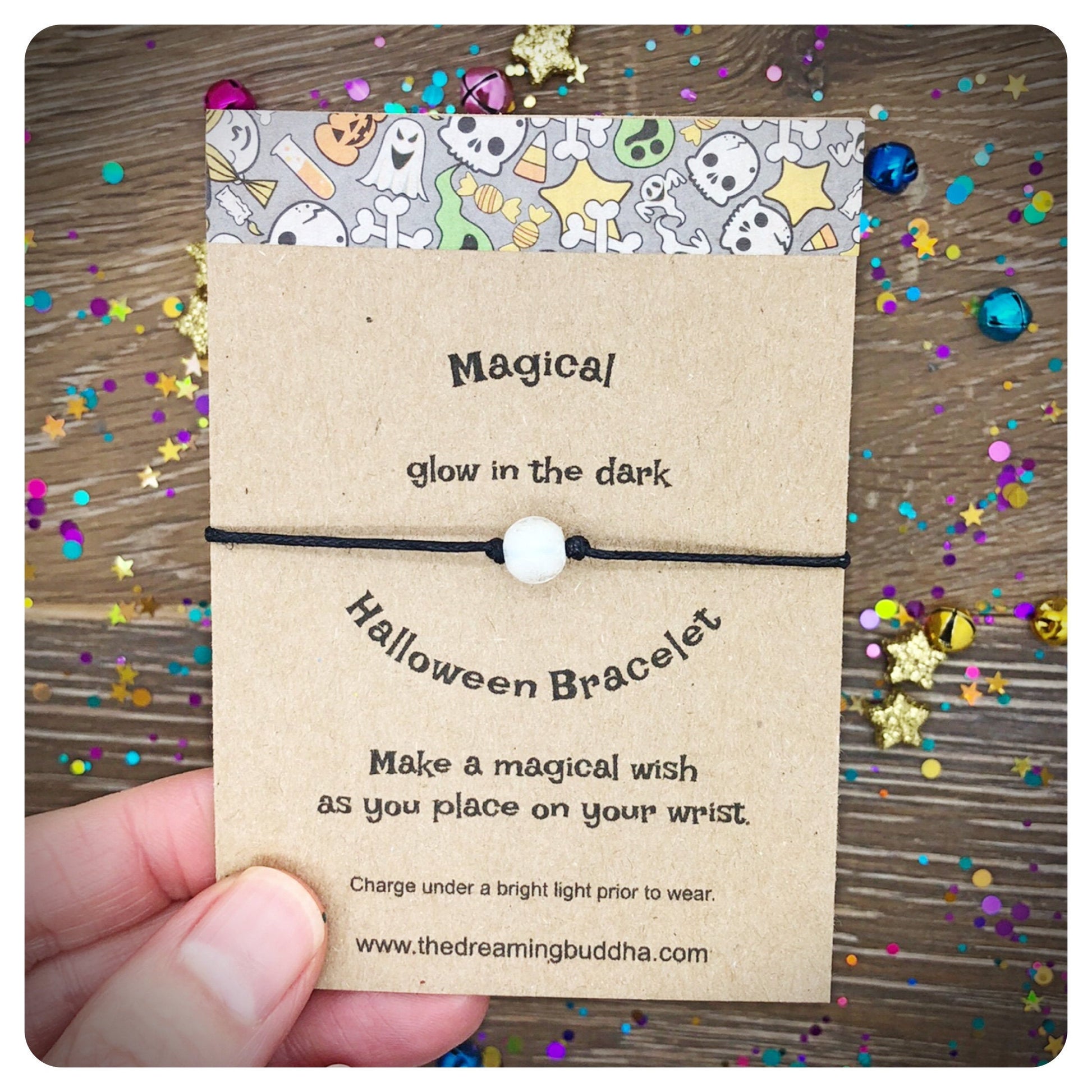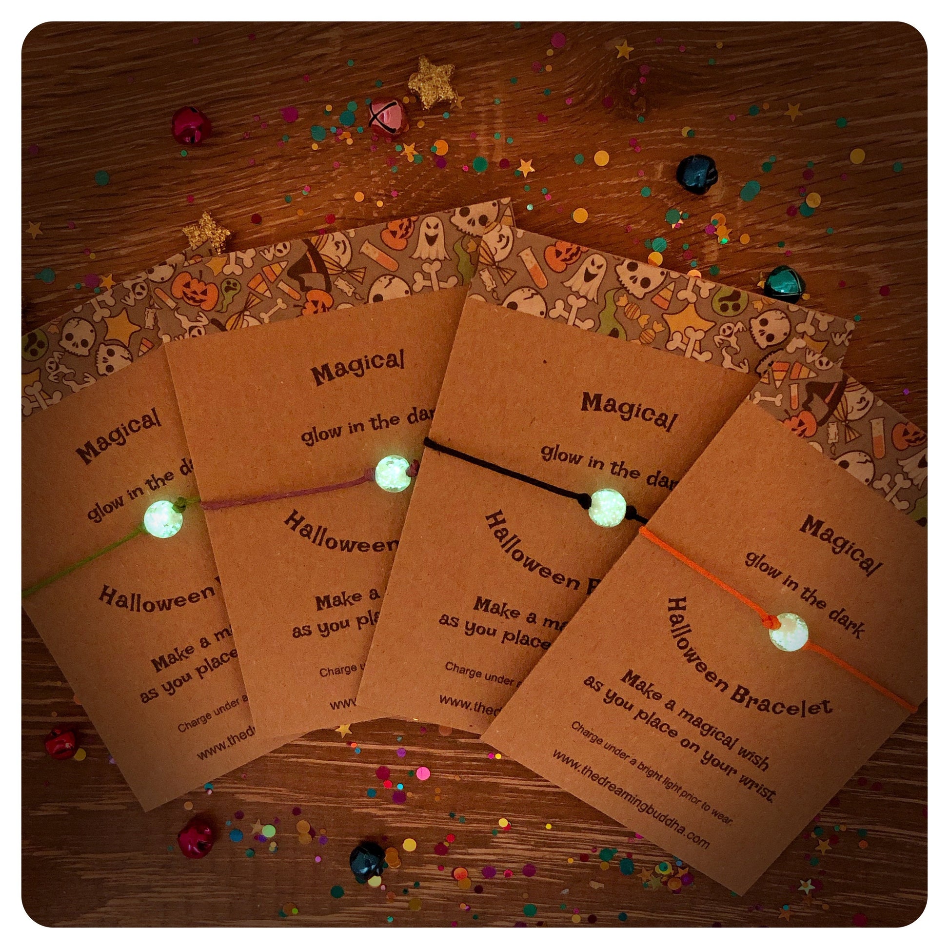 4 x Magical Halloween Bracelets, Glowing Wish Bracelet, Four Halloween Party Favours, Glow in the Dark Jewellery, Kids Halloween Accessory