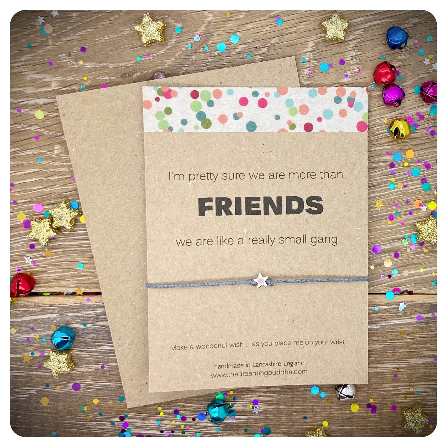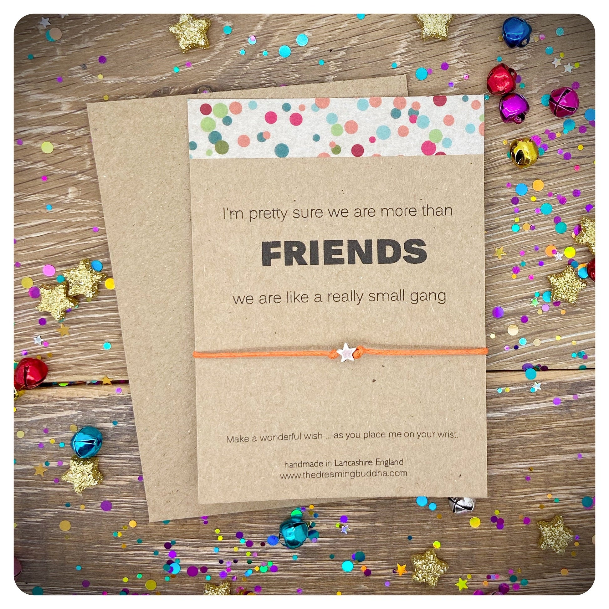 These handmade wish bracelet cards read - I’m pretty sure we are more than friends we are like a really small gang.