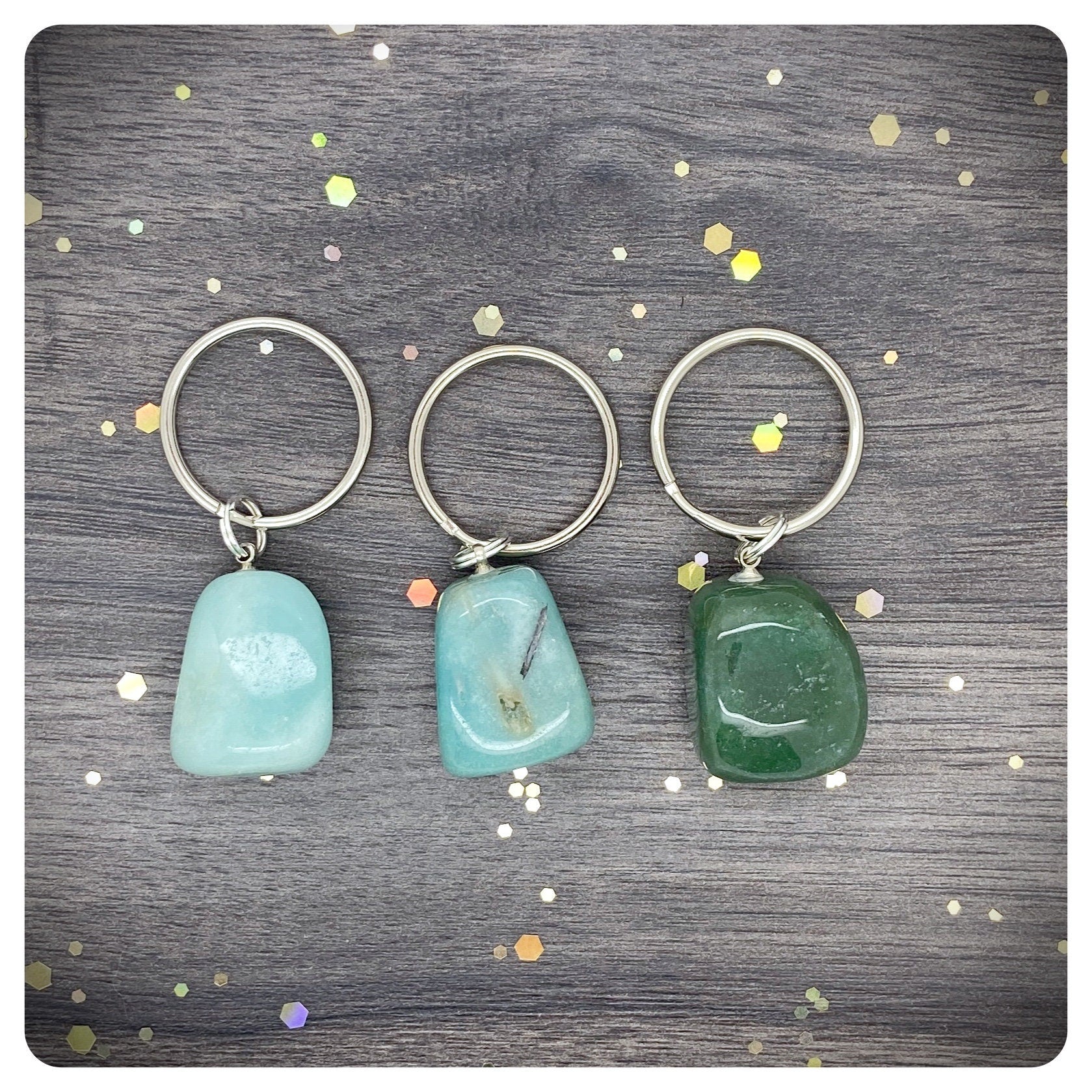 Each keyring is packaged in a small gift box with a little description of the crystals properties.