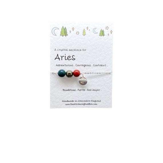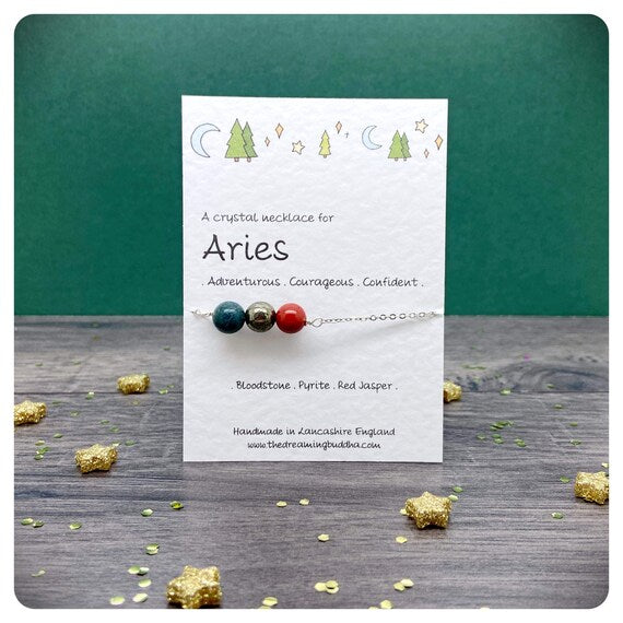 Aries Necklace, Birthday Crystal Pendant, March April Gemstones, Personalised Zodiac Necklace, Handmade Star Sign Jewellery, Silver Plated