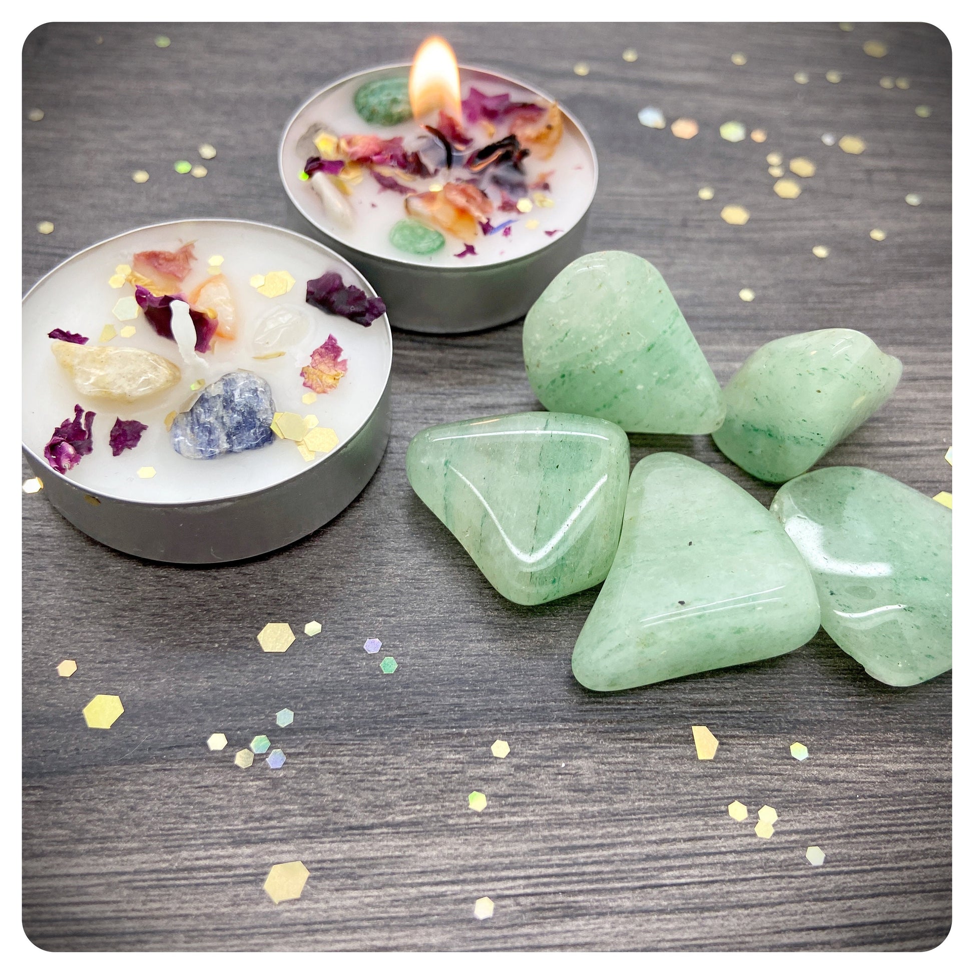 Aventurine Tumbled Gemstone & Healing Candle, Good Luck Gift