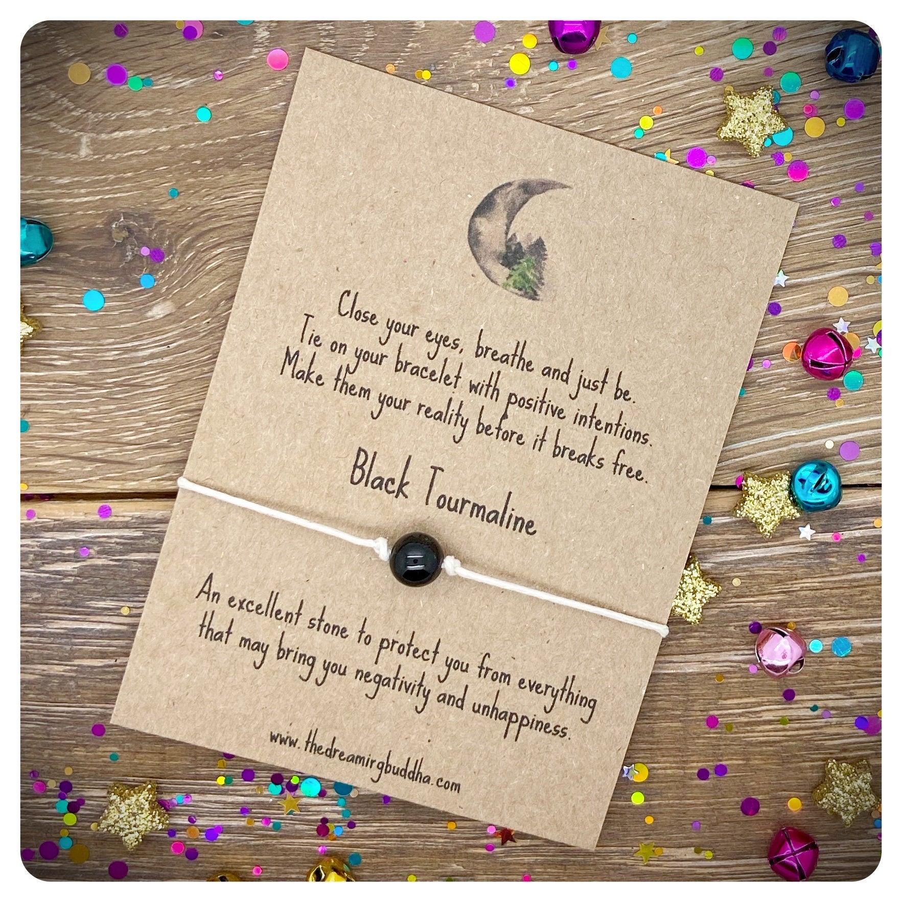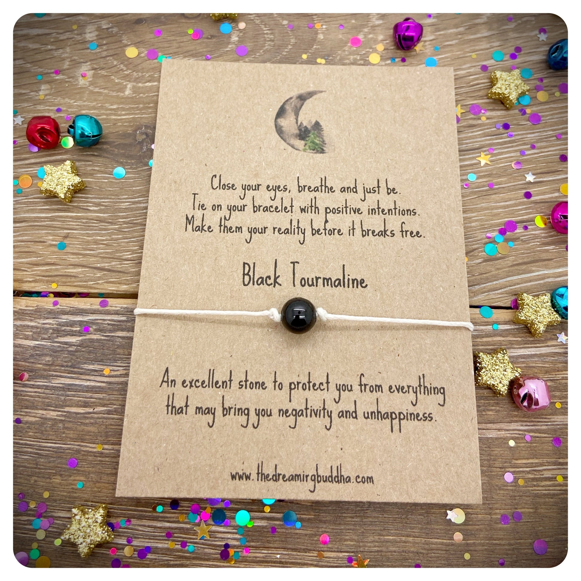 Each bracelet includes a genuine Black Tourmaline crystal bead and is made from quality 1mm waxed cord.