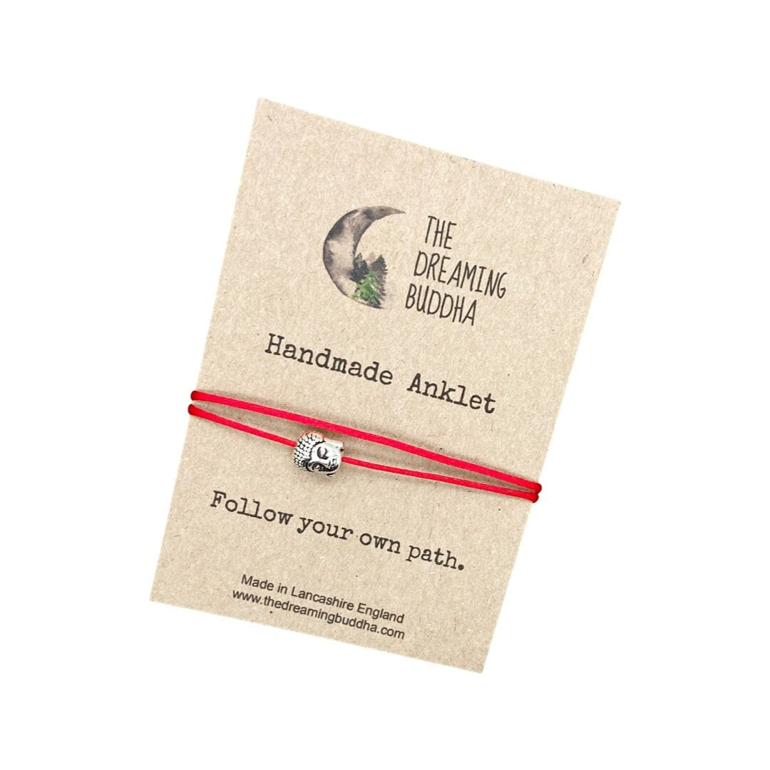 Buddha Yoga Anklet For Her, Buddha Red Cord Adjustable Anklet, Womens Anklet Buddha Charm, Spiritual Yogi, Simple Tibetan Anklet