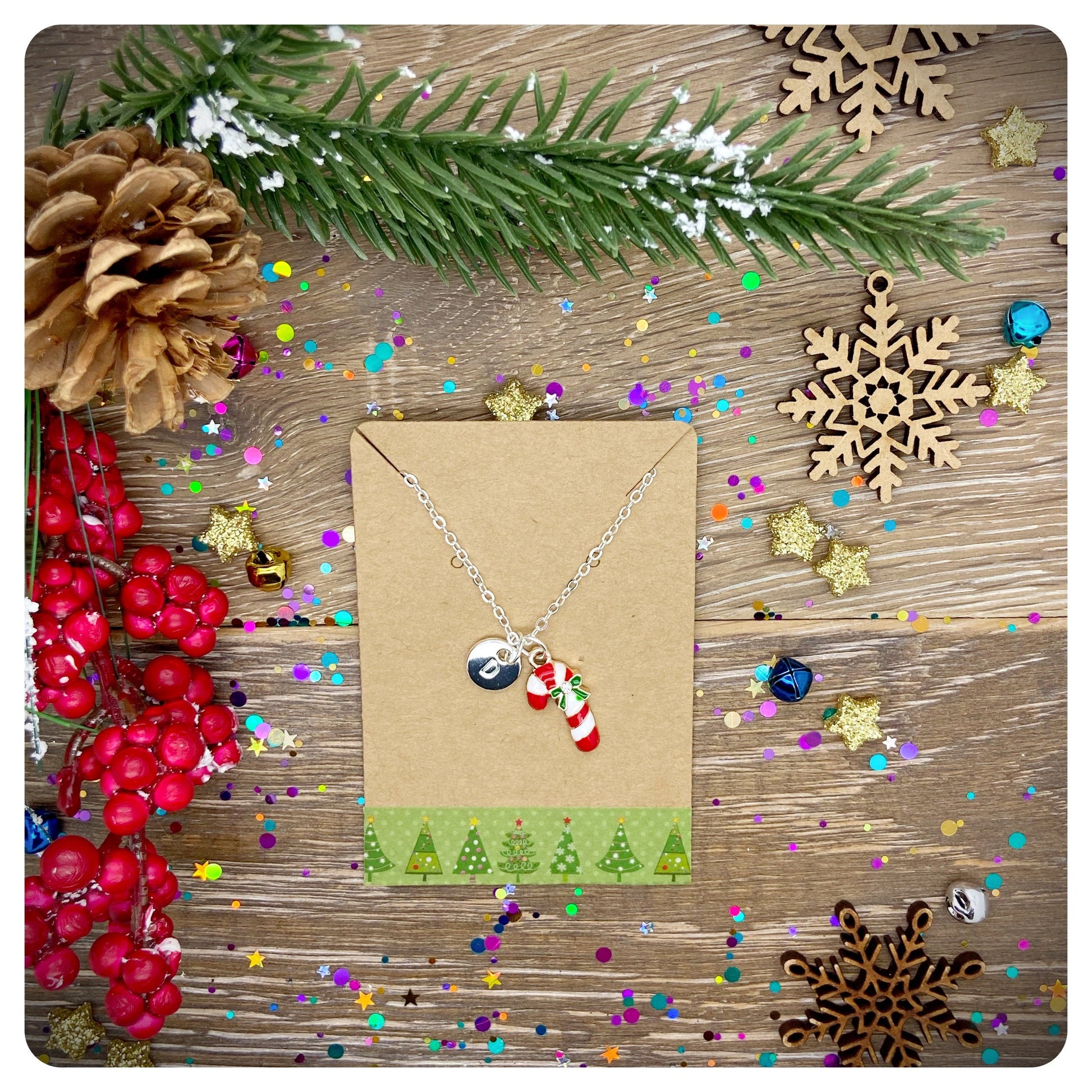 The necklace includes a cute enamel candy cane charm with the option to personalise the necklace with a silver plated initial charm.