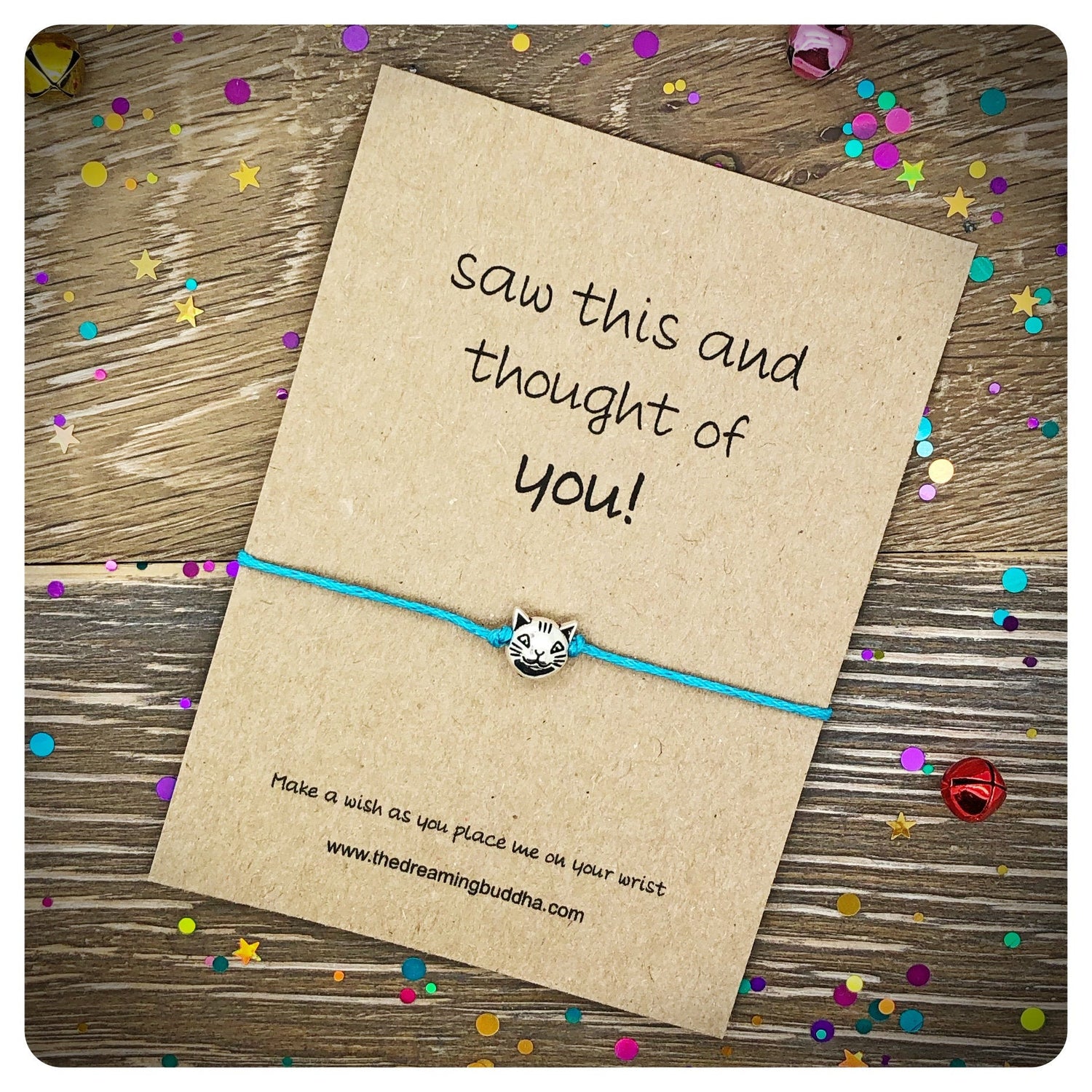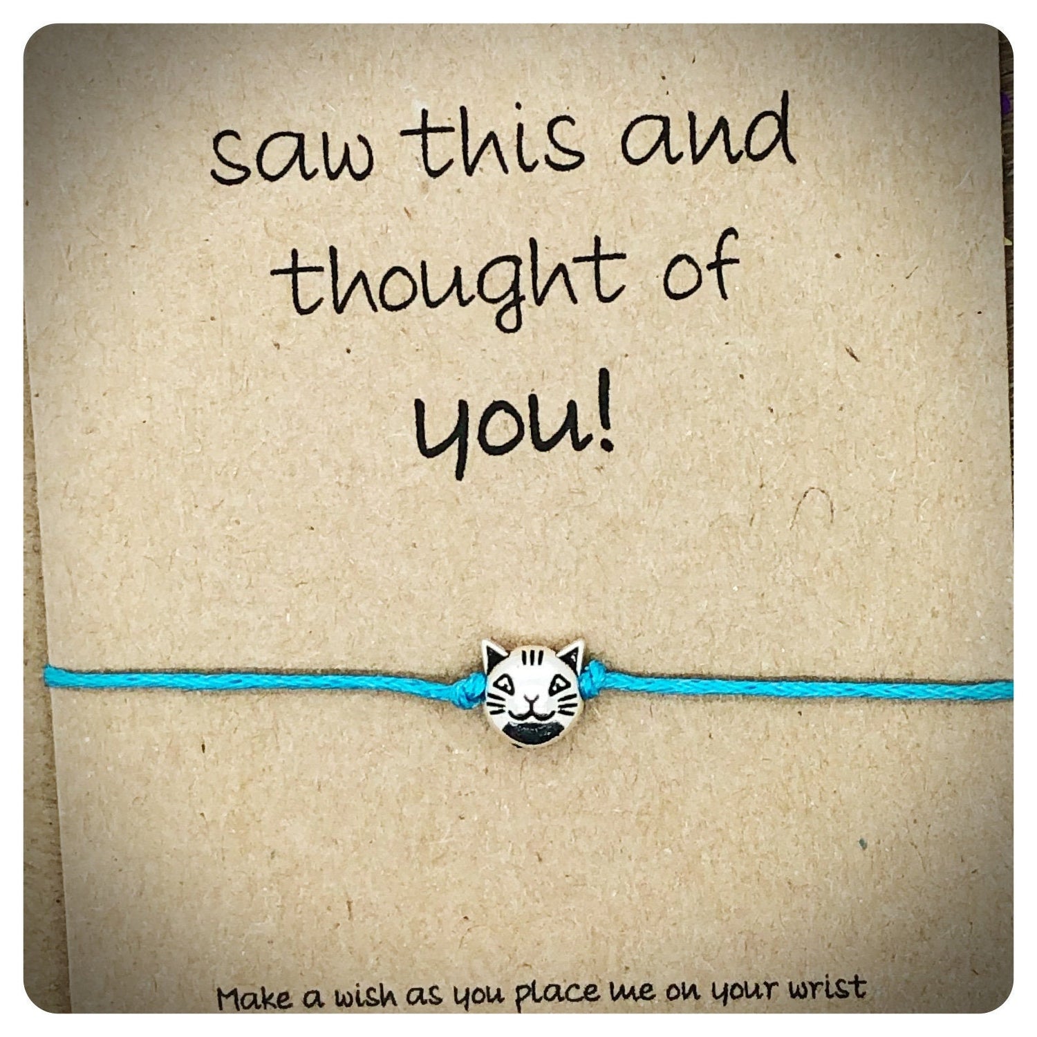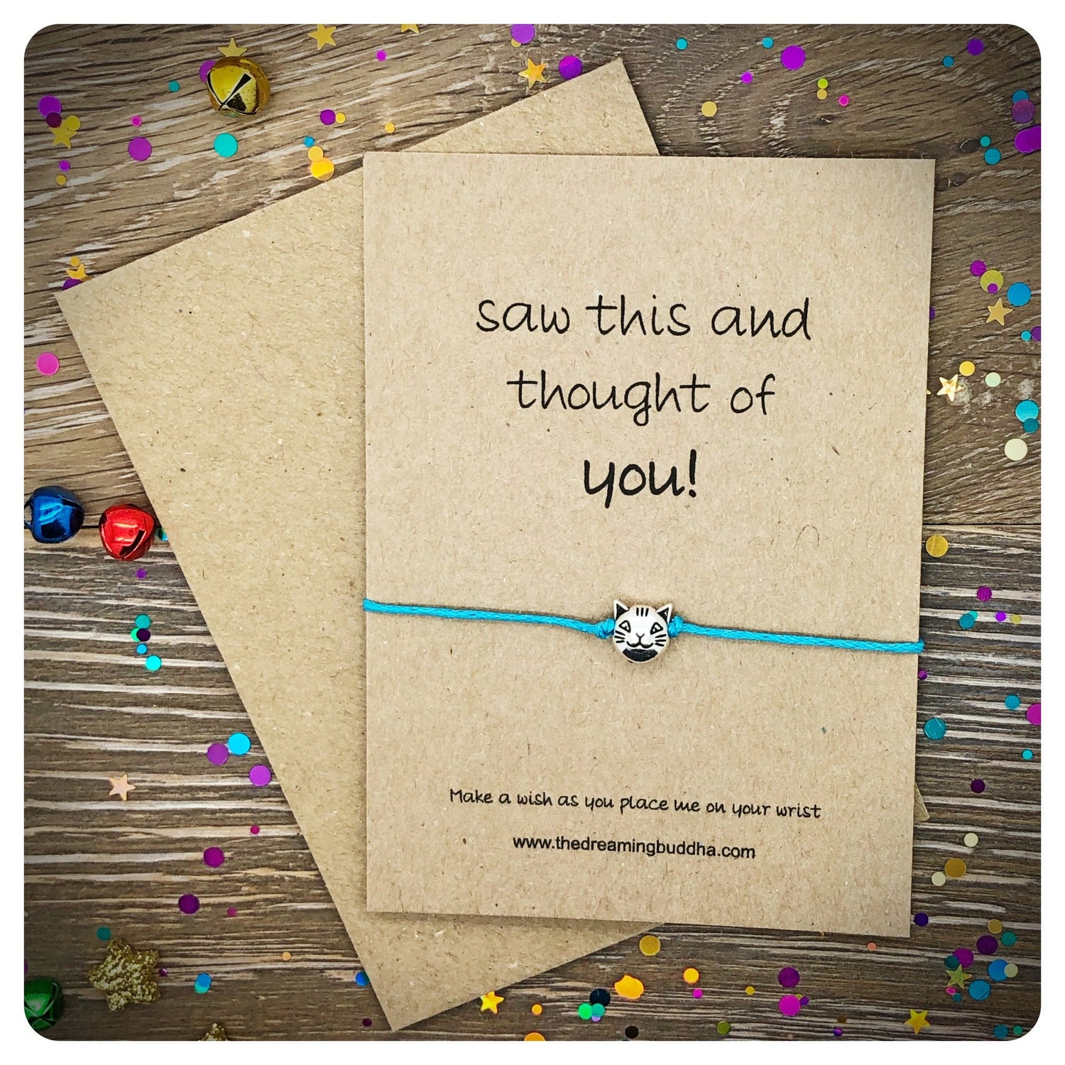 This handmade wish bracelet card reads - Saw this and thought of you!