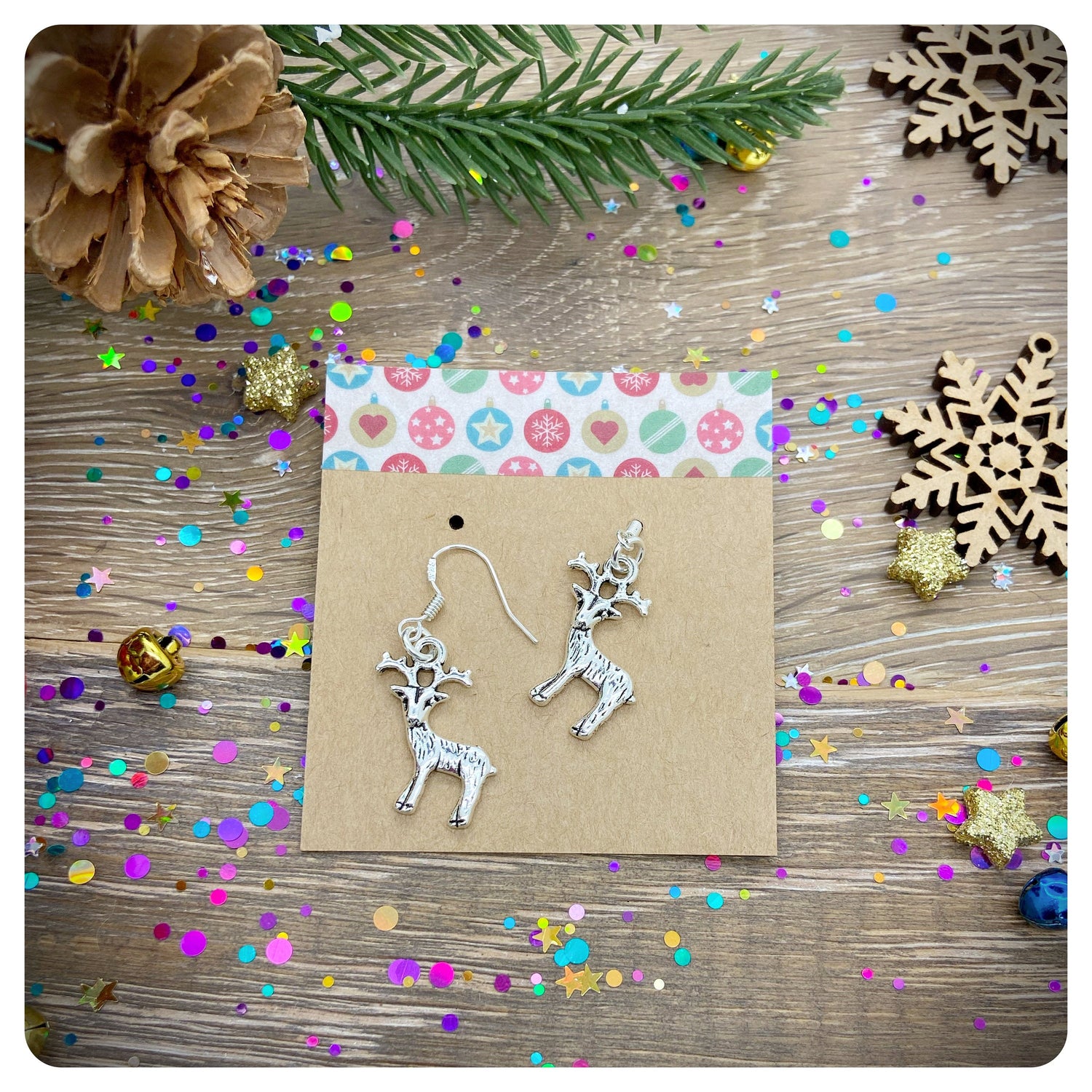 Christmas Deer Earrings, Reindeer Hook Earrings, Rudolph Dangle Earrings, Animal Earrings, Cute Deer Jewellery, Winter Earrings