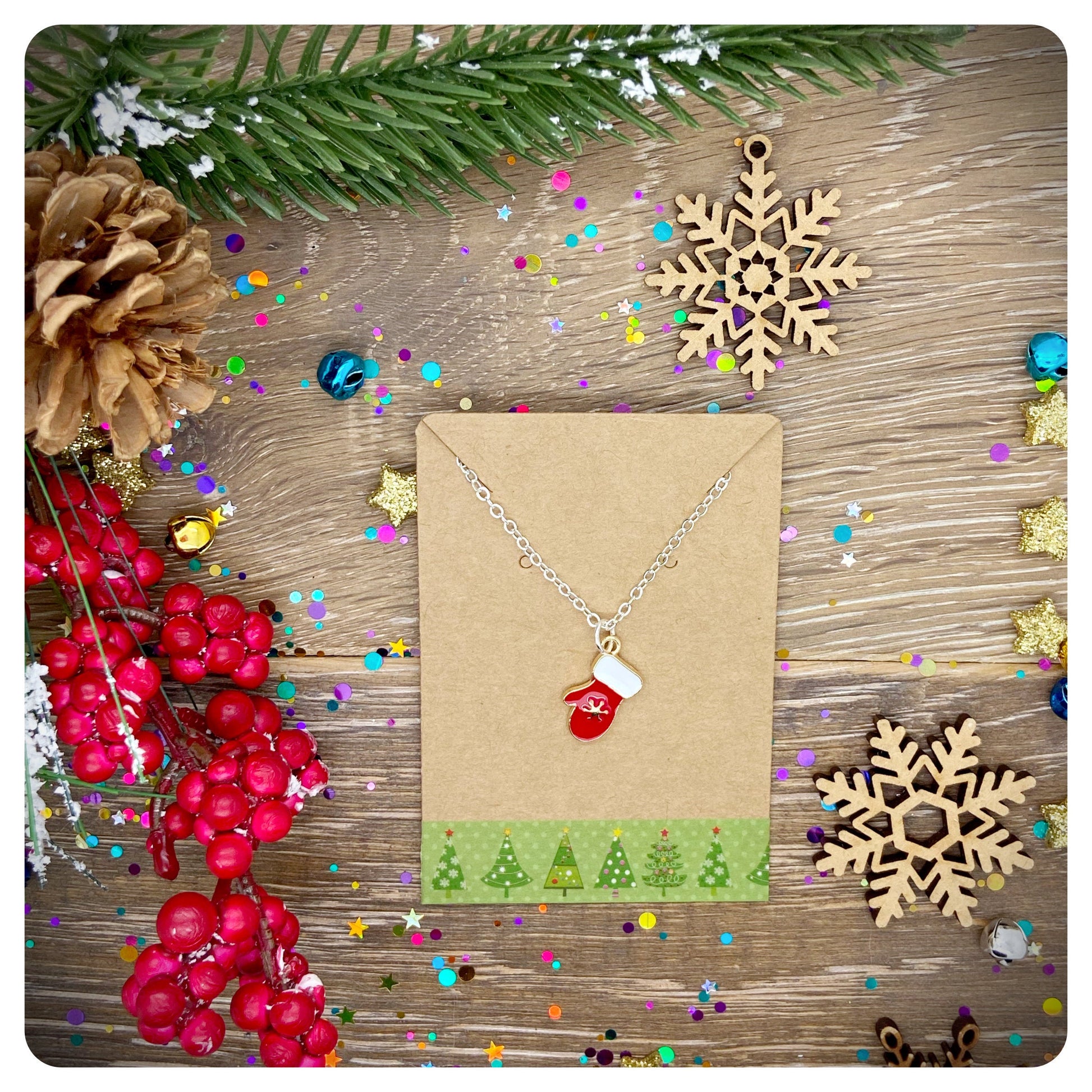 Christmas Mittens Jewellery Set, Mitten Earrings, Red Xmas Novelty Necklace Earring Set, Stocking Filler Gifts, Cute Xmas Jewellery