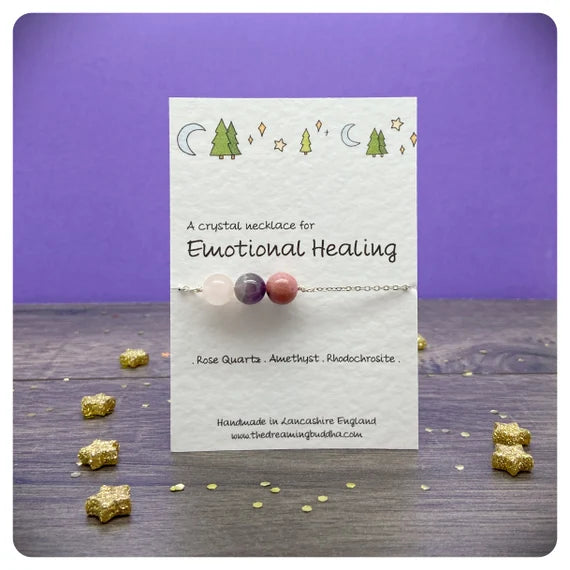Emotional Healing Crystal Necklace, Personalised Jewellery, Inner Peace Gemstones, Emotional Support Gift, Thinking Of You Letterbox Gift
