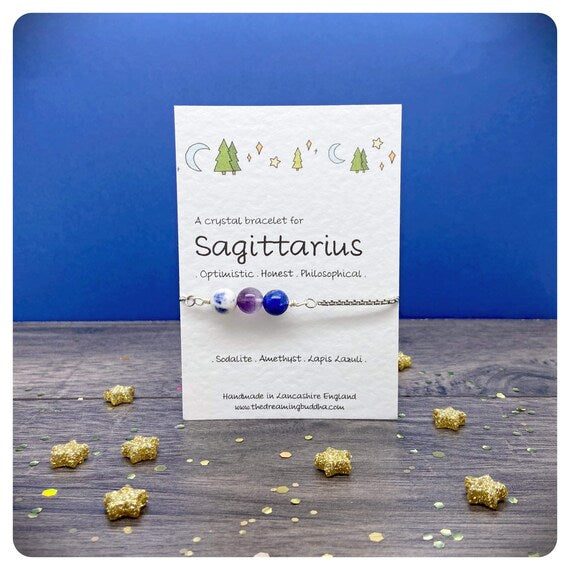 Sagittarius Adjustable Bracelet, Personalised Zodiac Jewellery, November December Birthstone Gift, Star Sign Crystal Bracelet