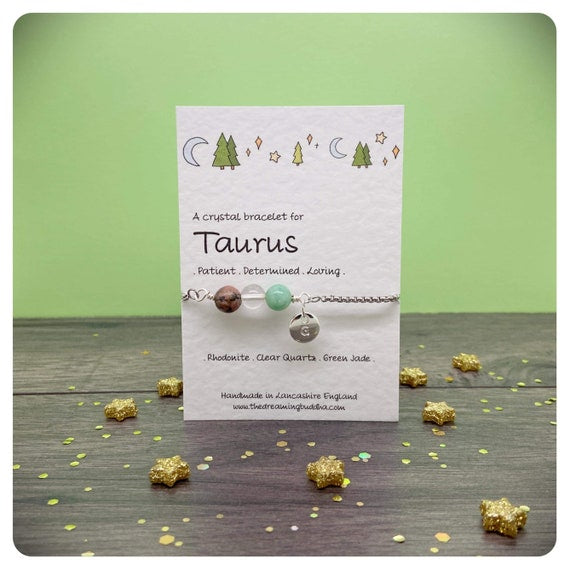 Taurus Personalised Crystal Bracelet, April May Zodiac Birthday Gift, Astrology Crystal Jewellery, Horoscope Slider Bracelet
