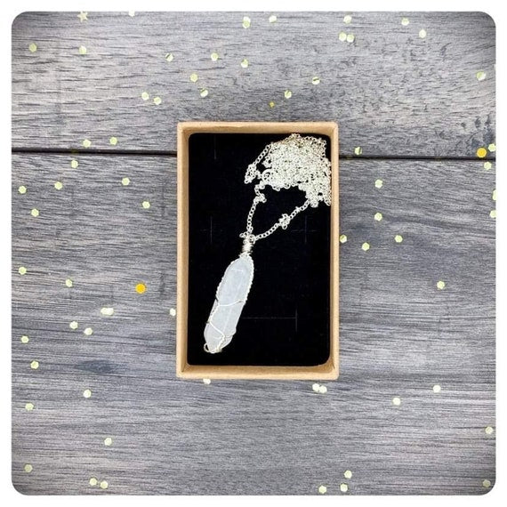 Each necklace is packaged in a small gift box for gift giving with a little description of the crystals properties.