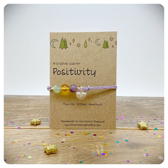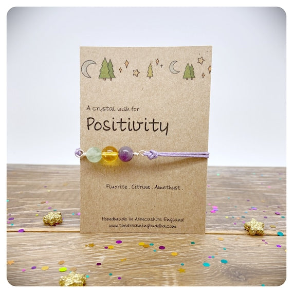 This handmade crystal bracelet for positivity reads - A crystal wish for Positivity