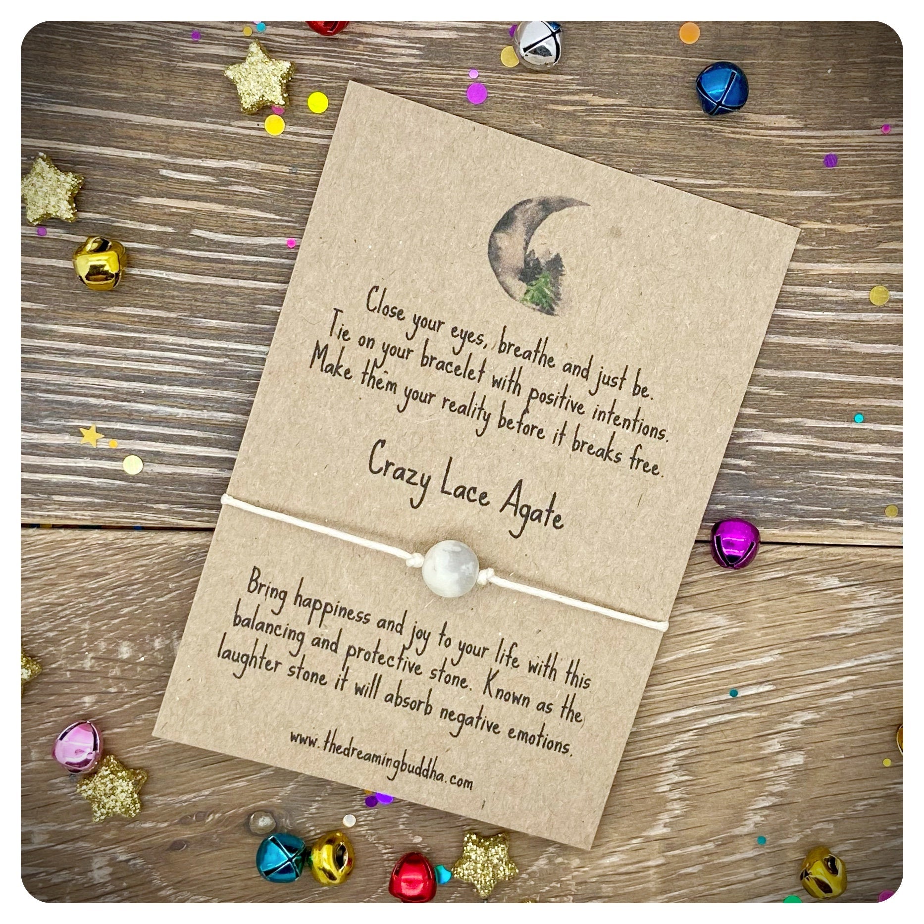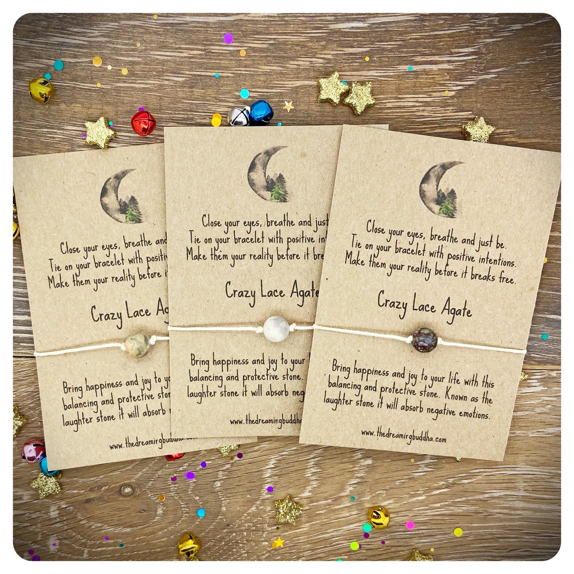 Each bracelet includes a genuine Crazy Lace Agate crystal bead and is made from quality 1mm waxed cord.