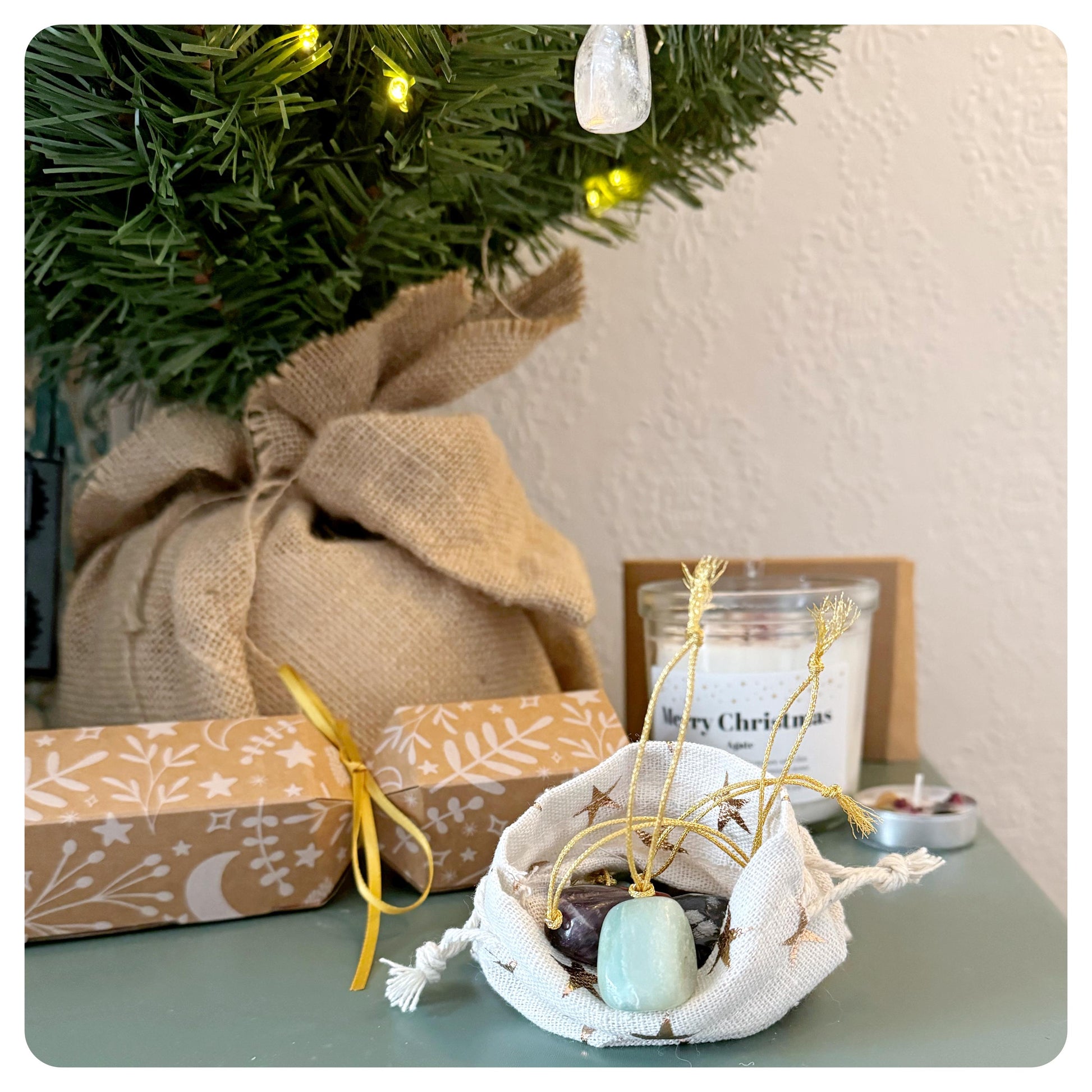 Crystal Christmas Tree Decorations Gemstone Hanging Ornaments Rustic Natural Baubles Rose Quartz, Amethyst, Lepidolite, Amazonite, Sodalite