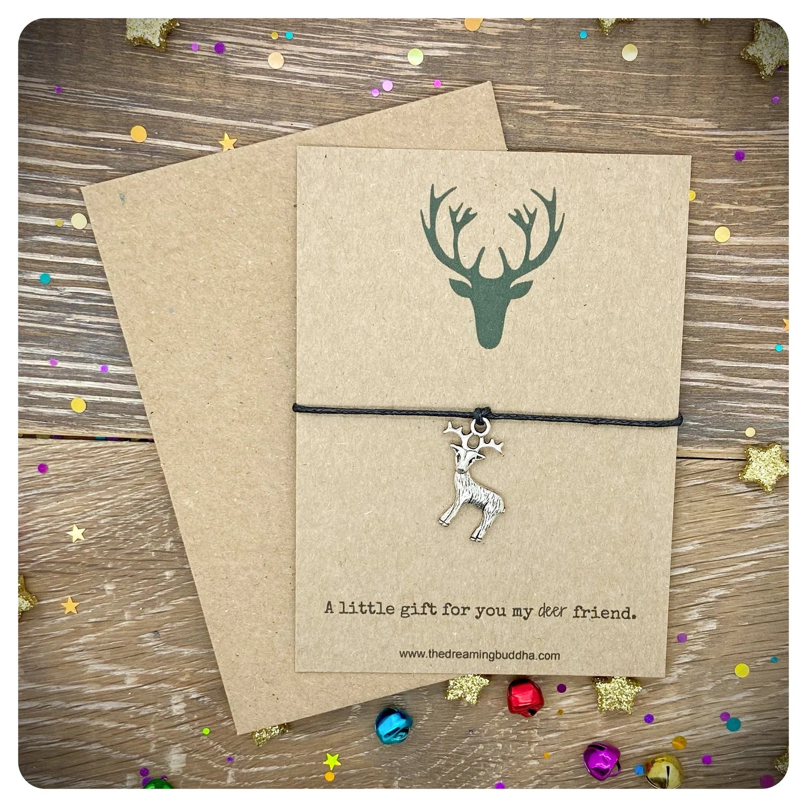 Deer Friend Card Wish Bracelet, Silver Stag Deer Charm Bracelet, Deer Friend Pun Card, Thinking Of You Gift