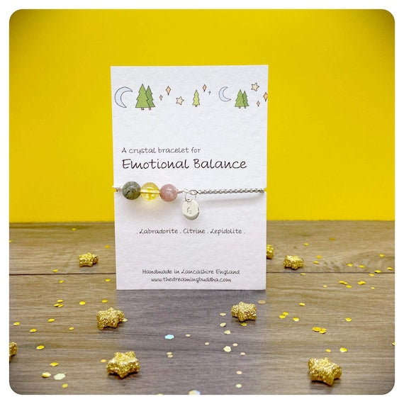 Emotional Balance Crystal Bracelet, Emotional Support Gift, Hormone Support For Her, Calm Emotions, Personalised Crystal Slider Bracelet