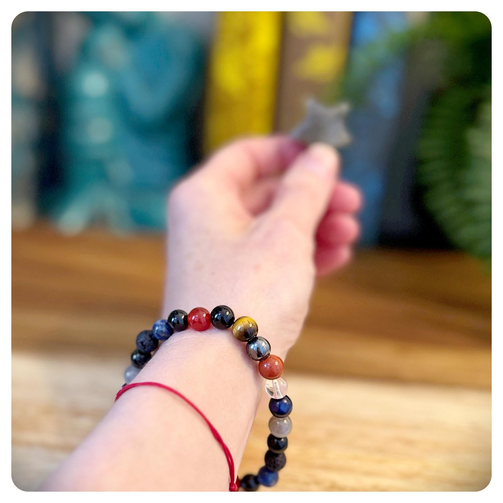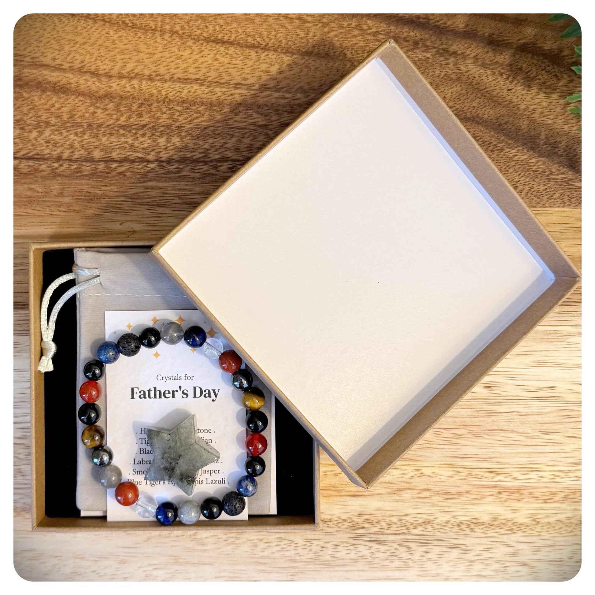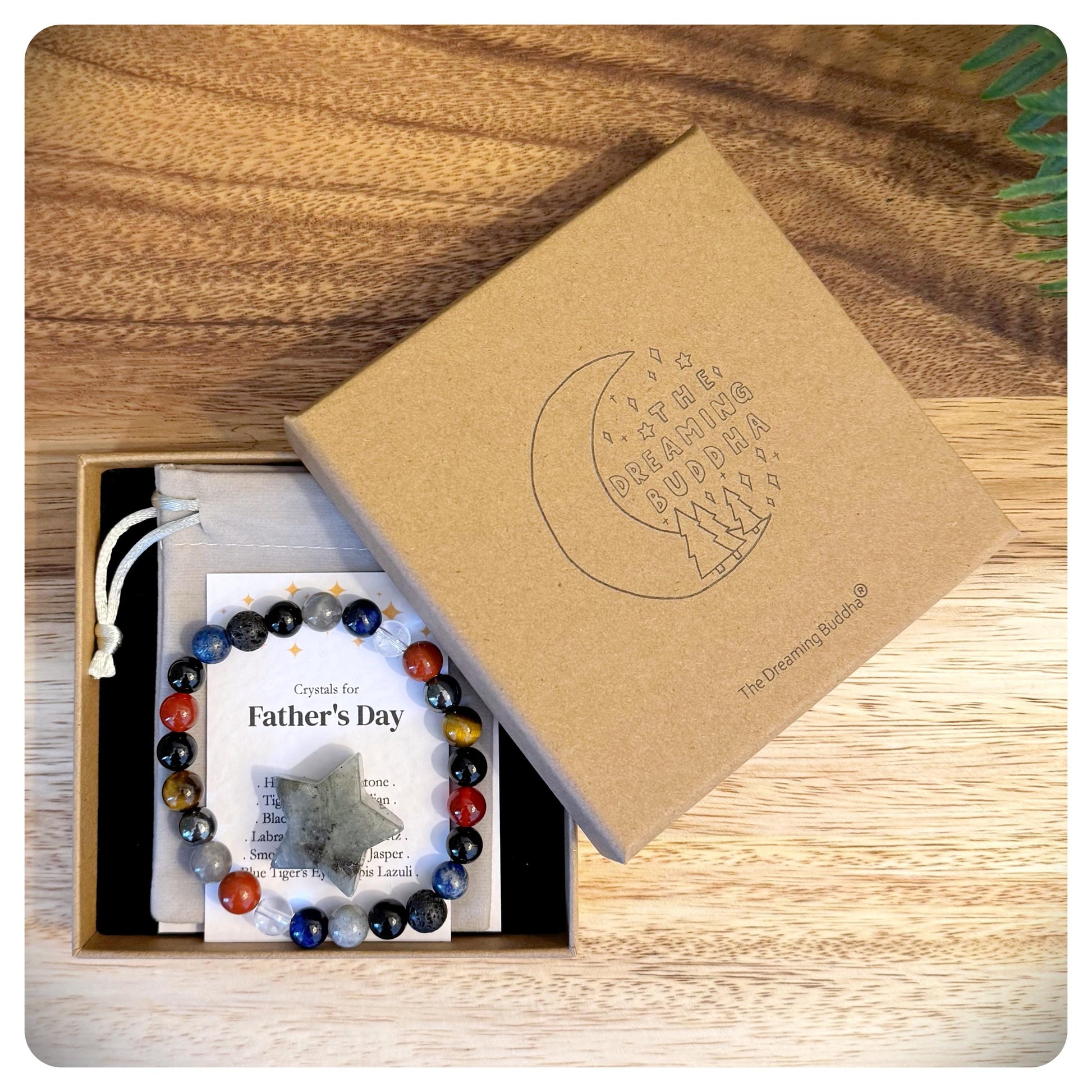 This handmade father's day crystal bracelet is a meaningful gift, designed to honour strength, protection, and wisdom. Featuring a powerful selection of natural crystals, this bracelet promotes confidence, grounding, and positive energy.