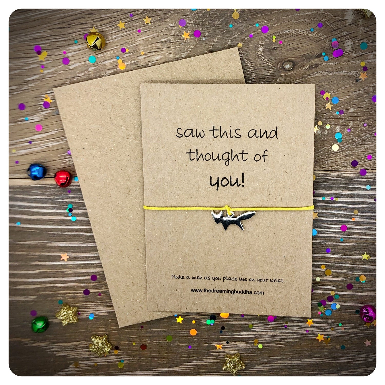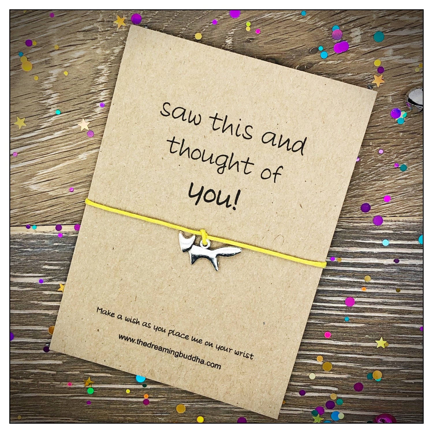 This handmade wish bracelet card reads - Saw this and thought of you!