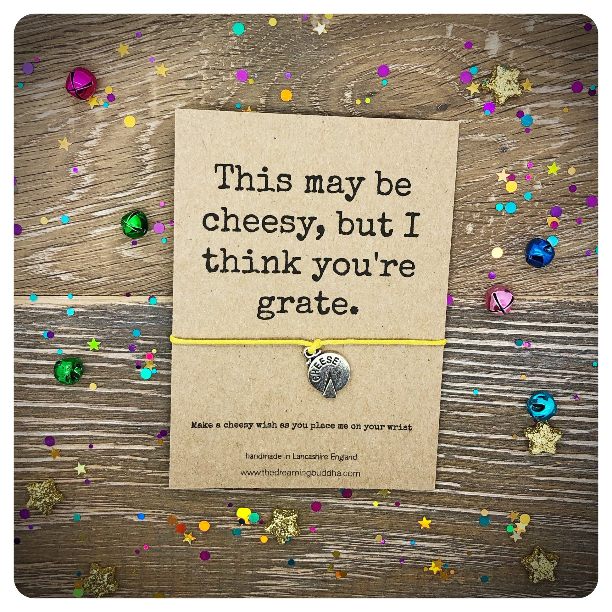 Friendship Wish Bracelet, Cheese Lover Card, Cheesy Gift, Cheddar Cheese Jewellery, Funny Wishlet