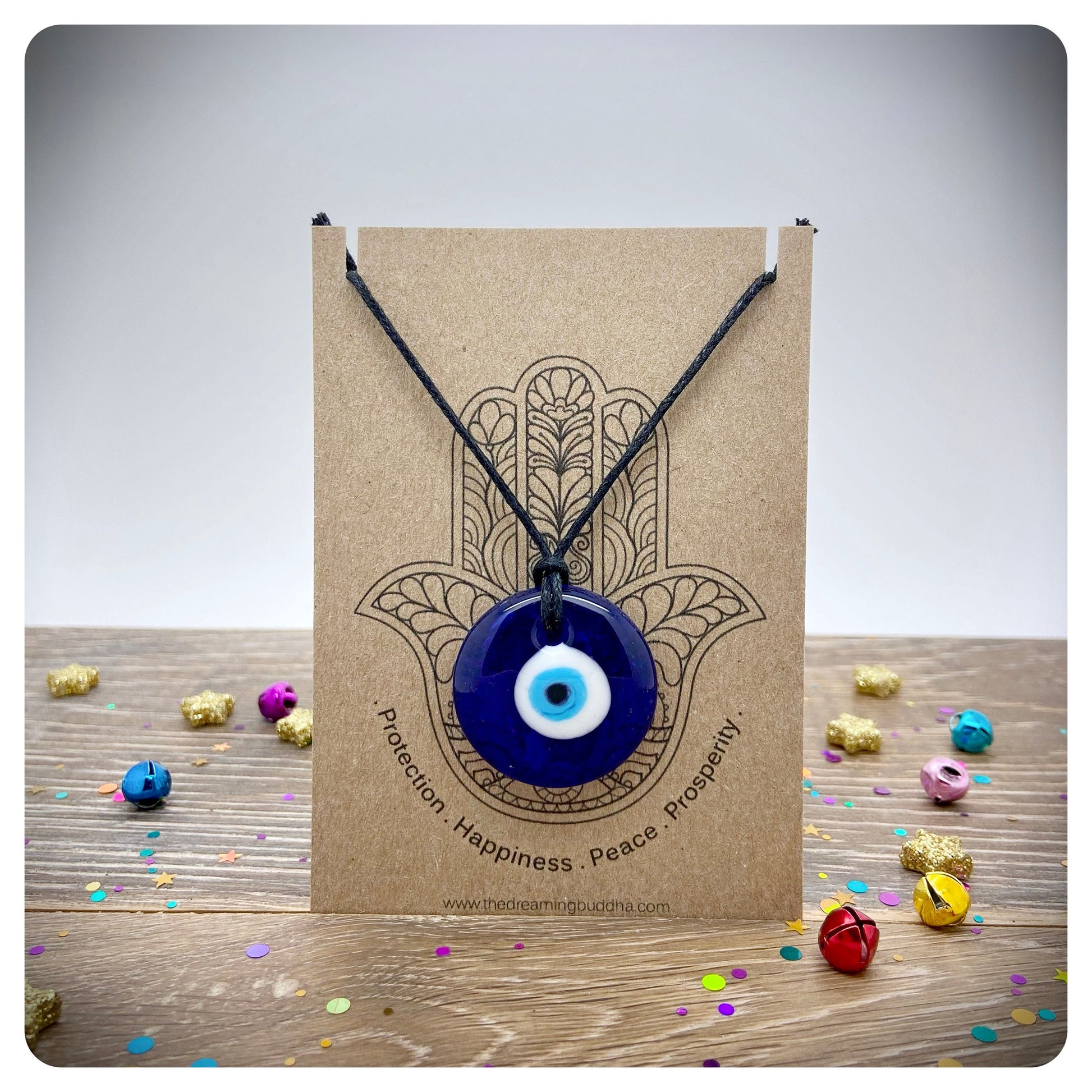Glass Evil Eye Necklace, Adjustable Nazar Protection Amulet