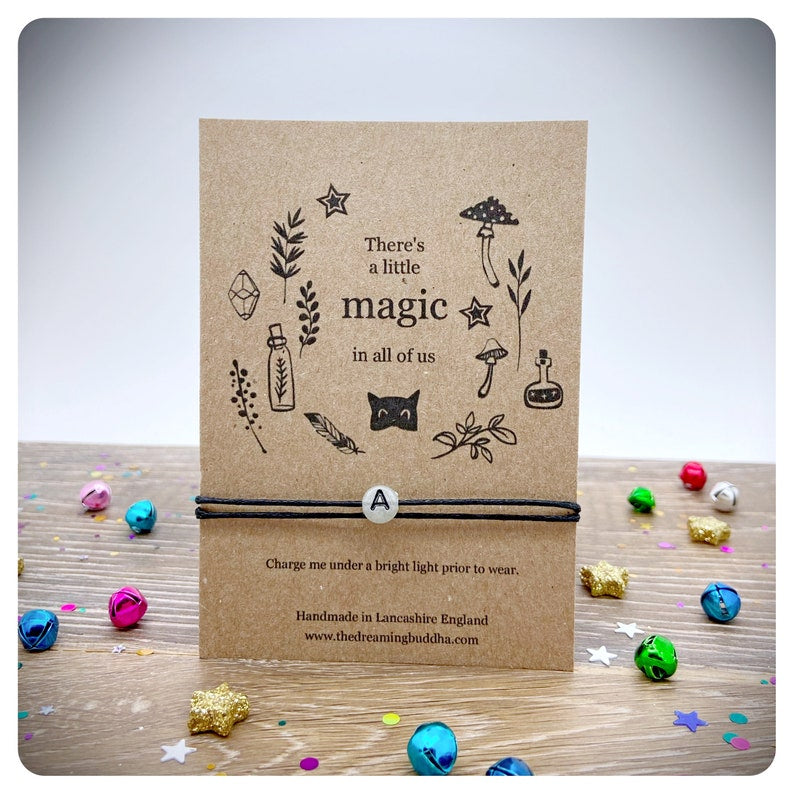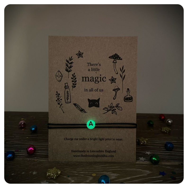 Glow In The Dark Initial Bracelet, Magical Personalised Gift, Adjustable Cord Letter Bracelet, Minimalist Jewellery
