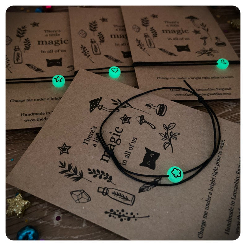 This wonderful, simple glow in the dark bracelet is handmade in Lancashire England.