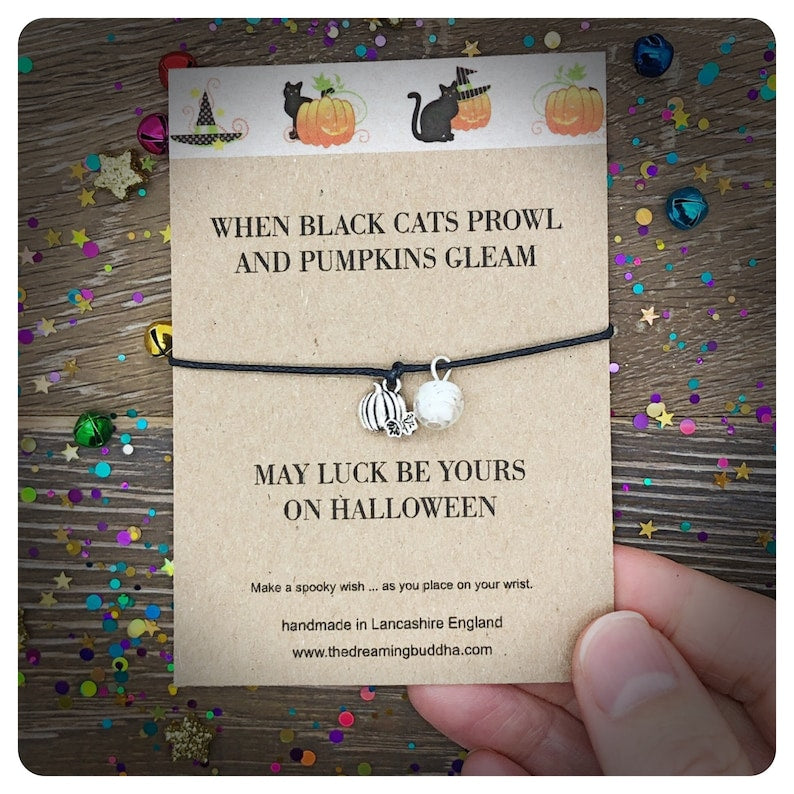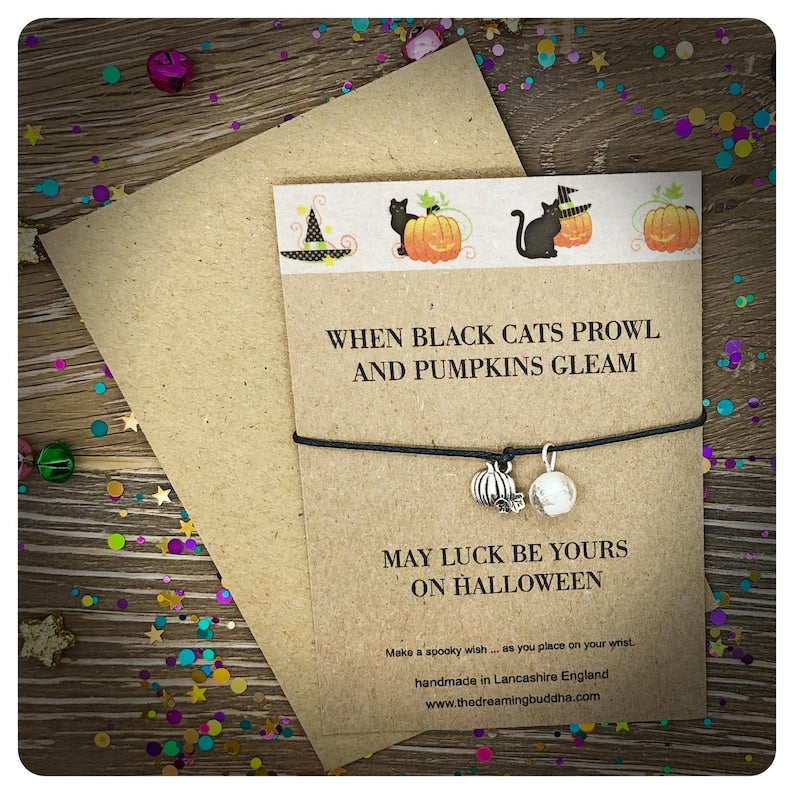 This Halloween wish bracelet is handmade by me in Lancashire England. The home of the Pendle Witches!
