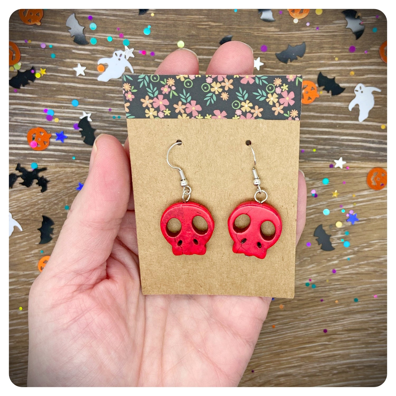 Halloween Candy Skull Earrings, Spooky Jewellery, Imitation Howlite Goth Gift