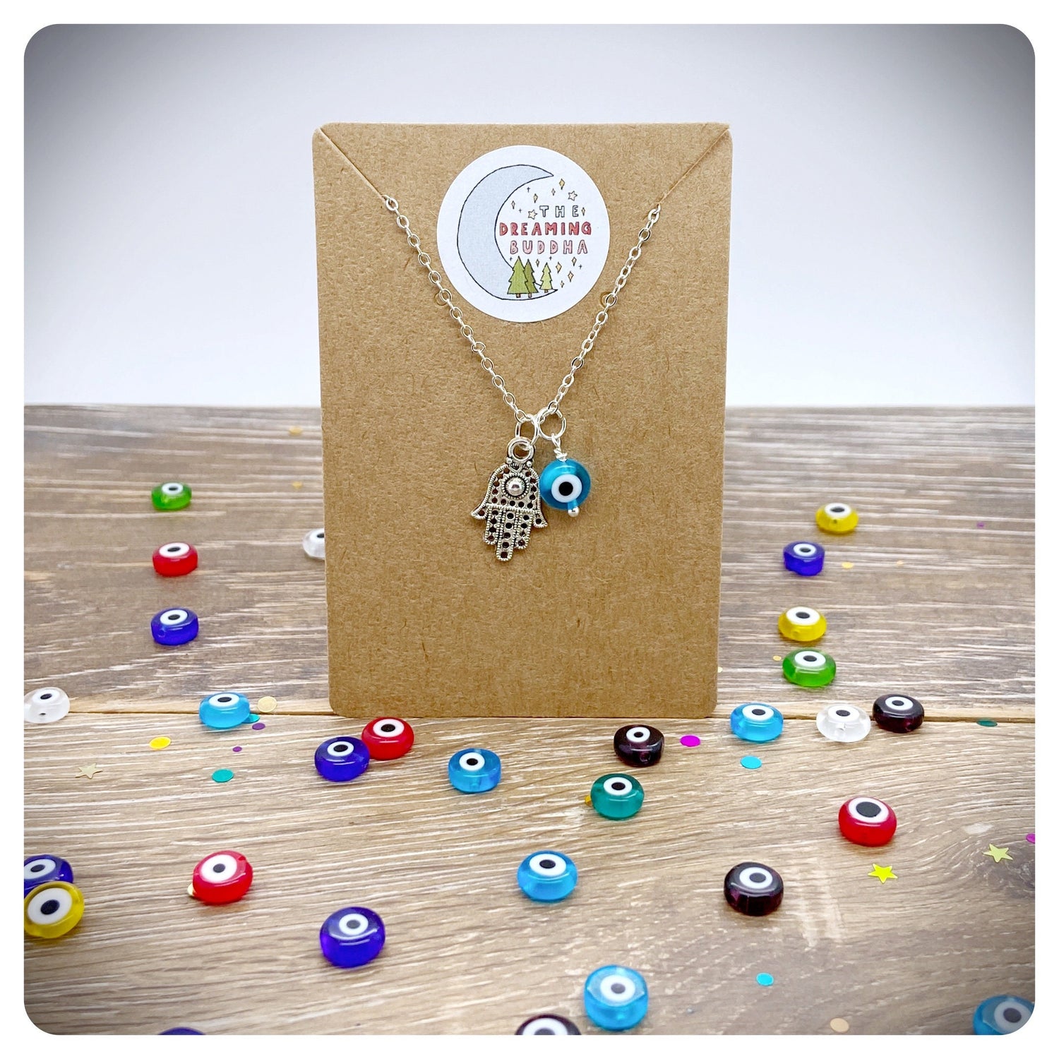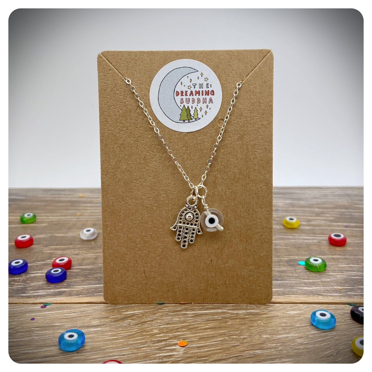 Hamsa Hand & Evil Eye Necklace, Greek Protection Jewellery, Turkish Good Luck Necklace
