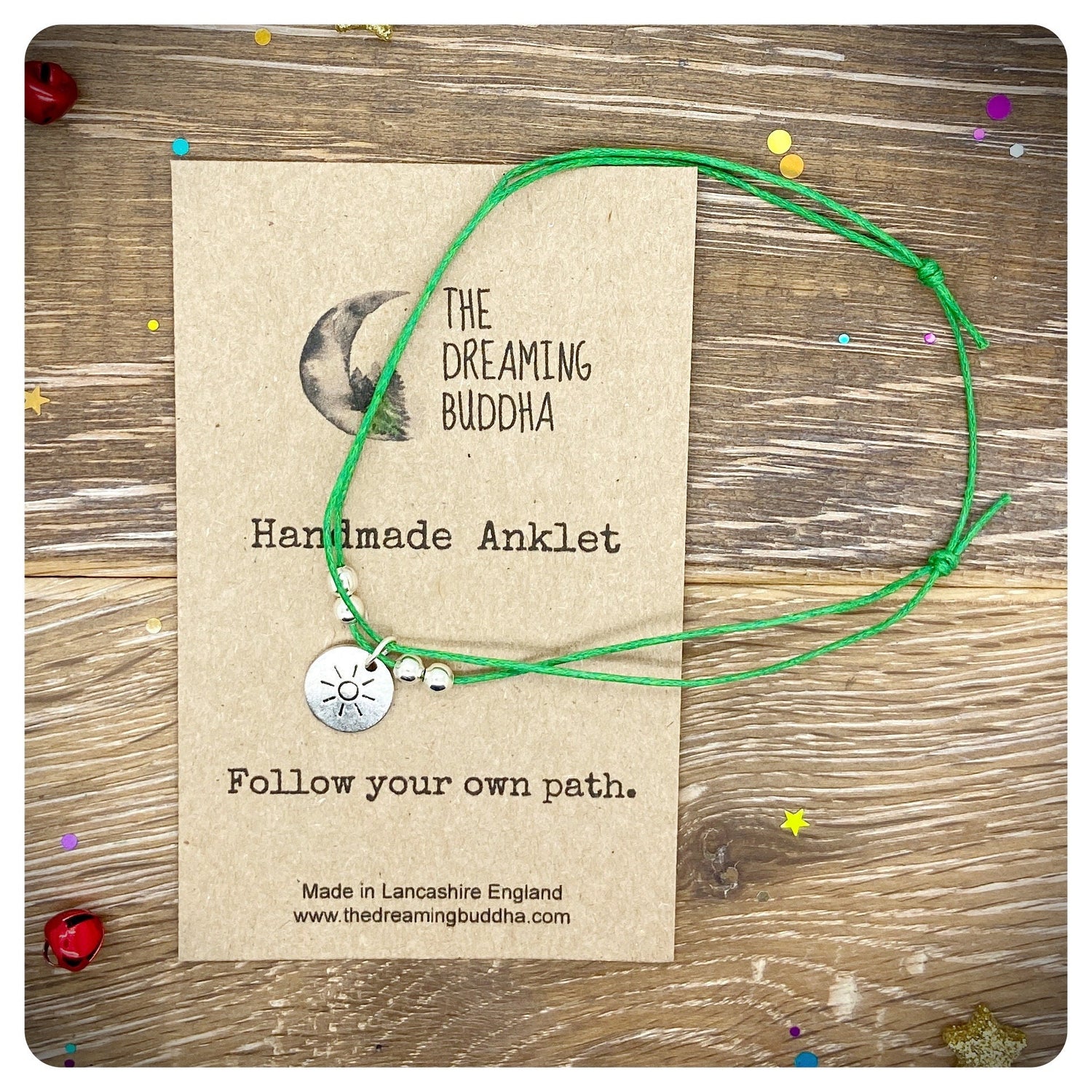 Handmade Sunshine Anklet, Sun Charm Anklet, Adjustable Anklet Sun Charm, Summer Lover Jewellery.