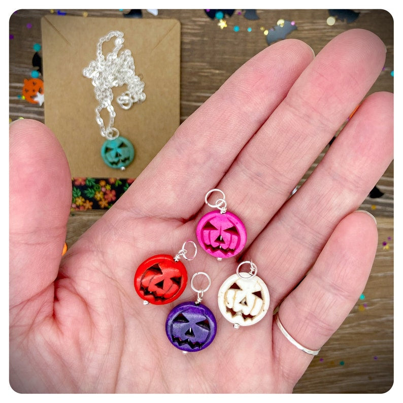 Howlite Pumpkin Necklace, Halloween Costume Jewellery, Silver Chain Necklace