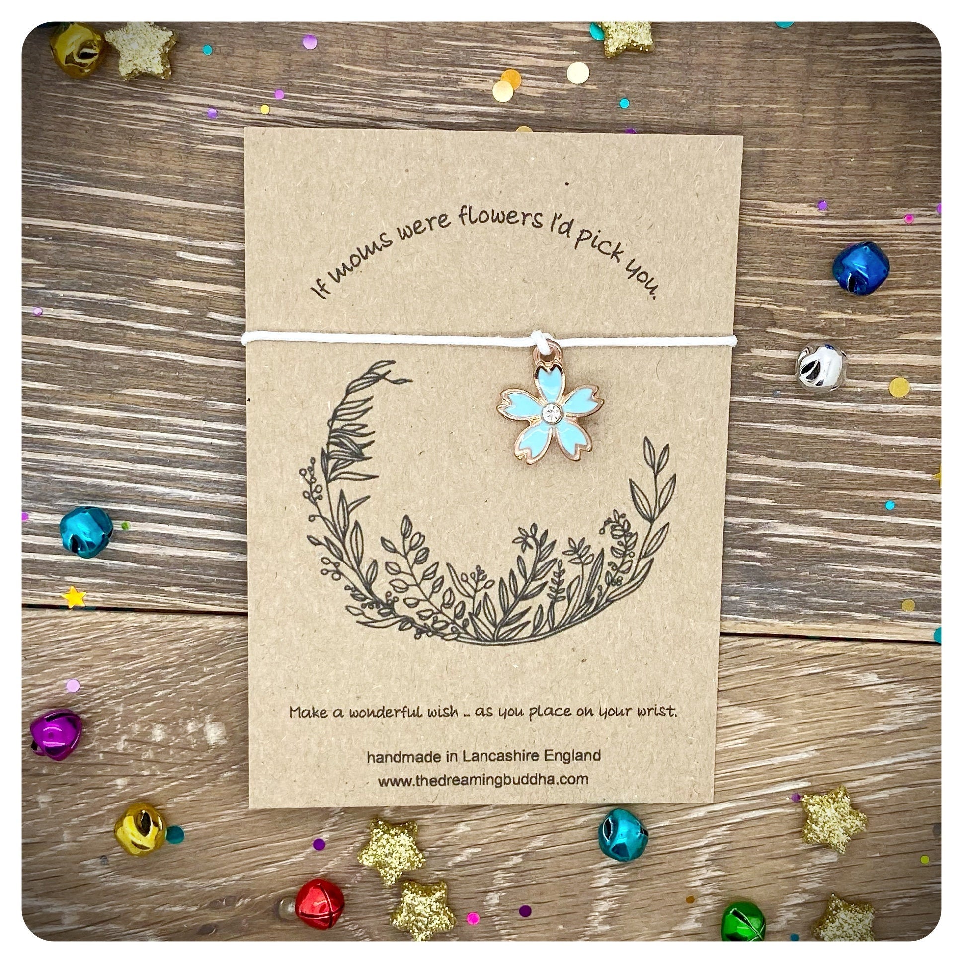 This handmade wish bracelet card reads - If moms were flowers I’d pick you.