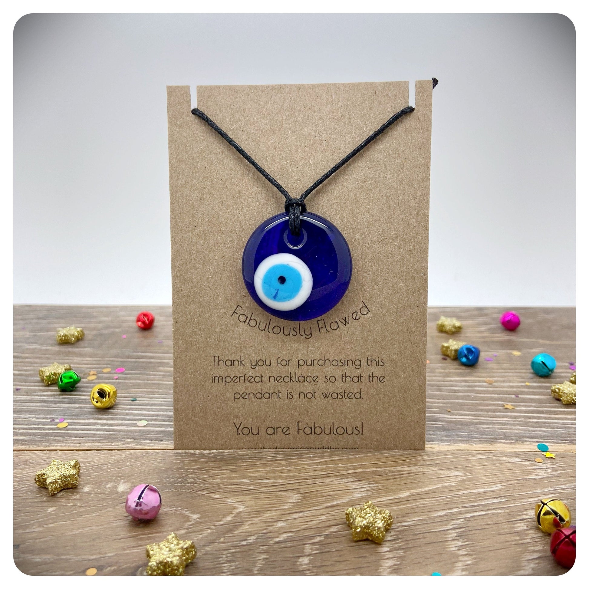 * Please note that these necklaces are made with imperfect glass evil eye pendants.