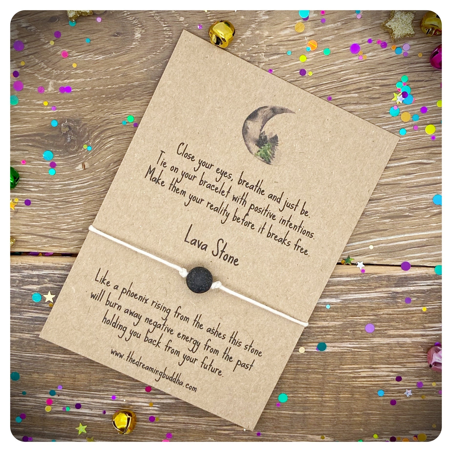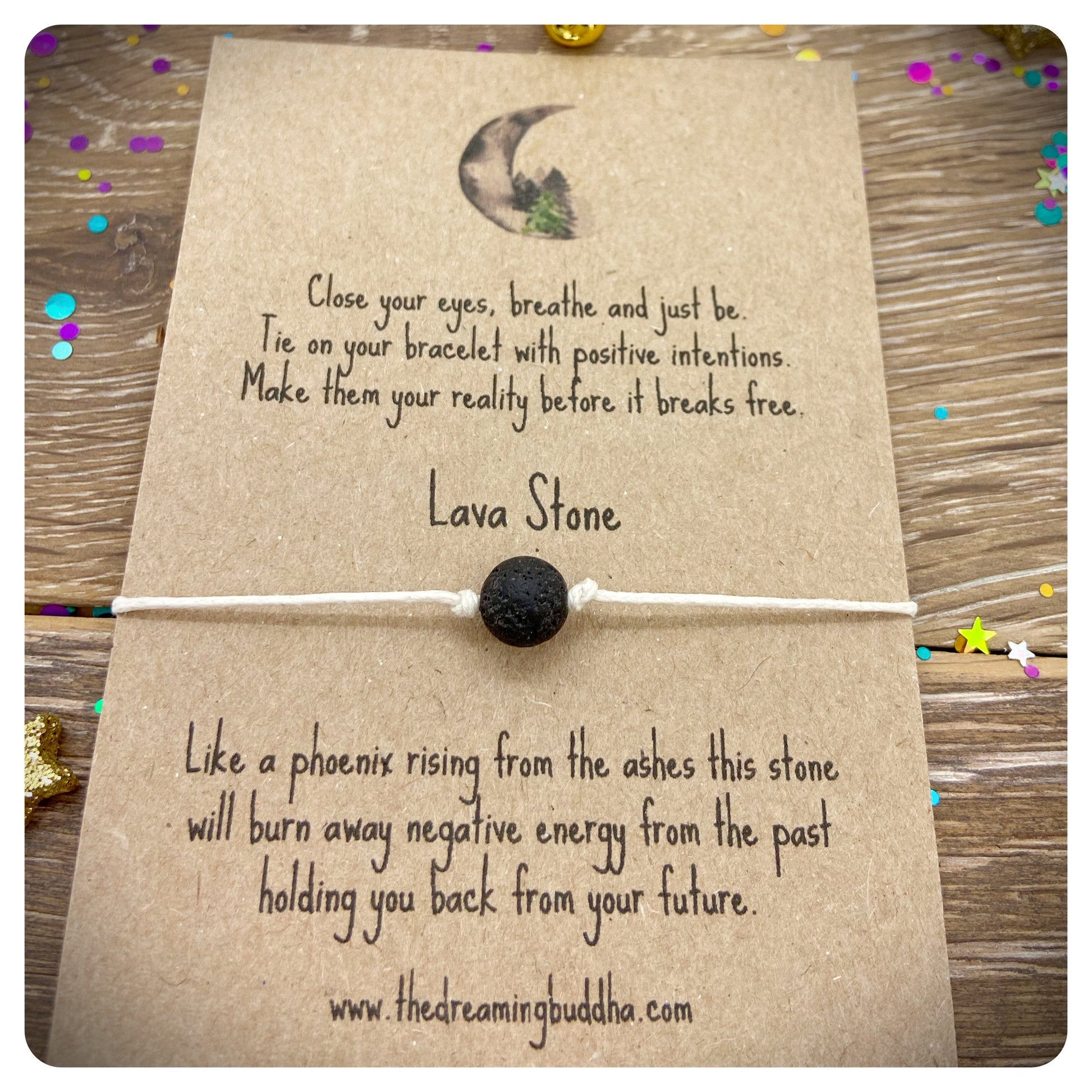 Lava Stone Wish Bracelet, New Beginnings Bracelet, Well Being Gift, Spiritual Gift Idea, Strength Courage Bracelet, Intentions Cards