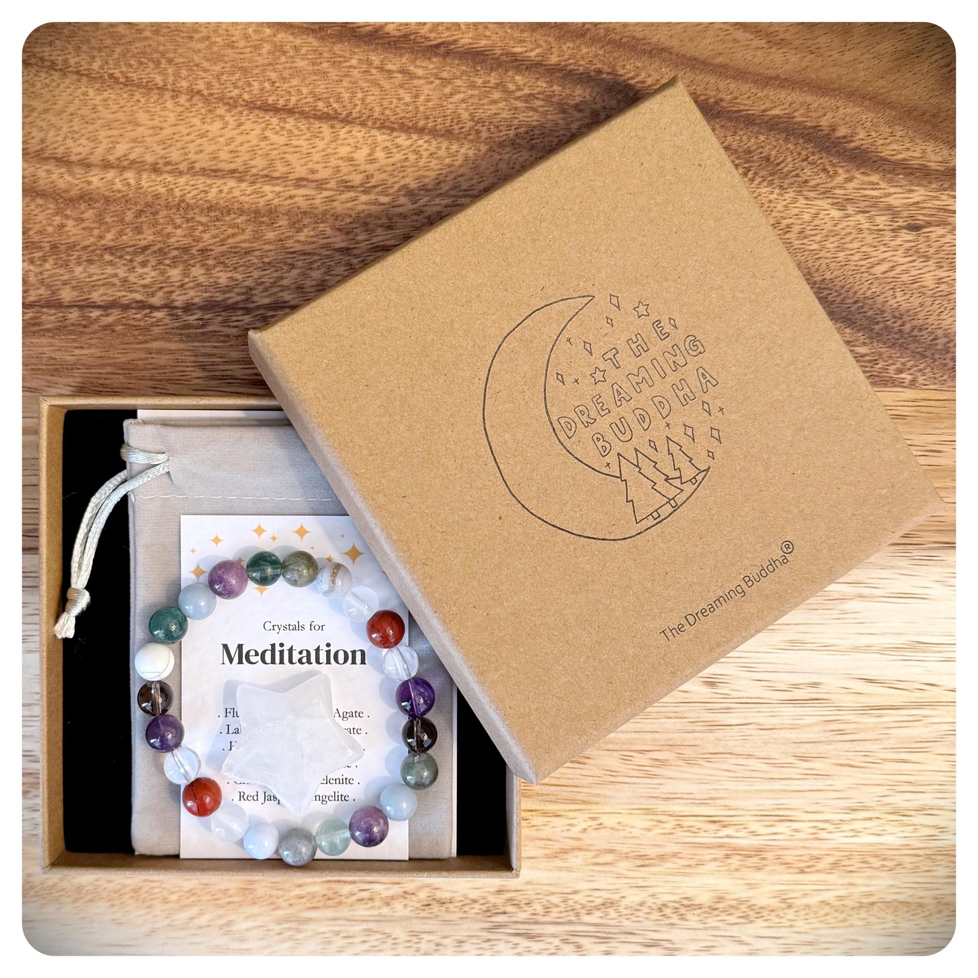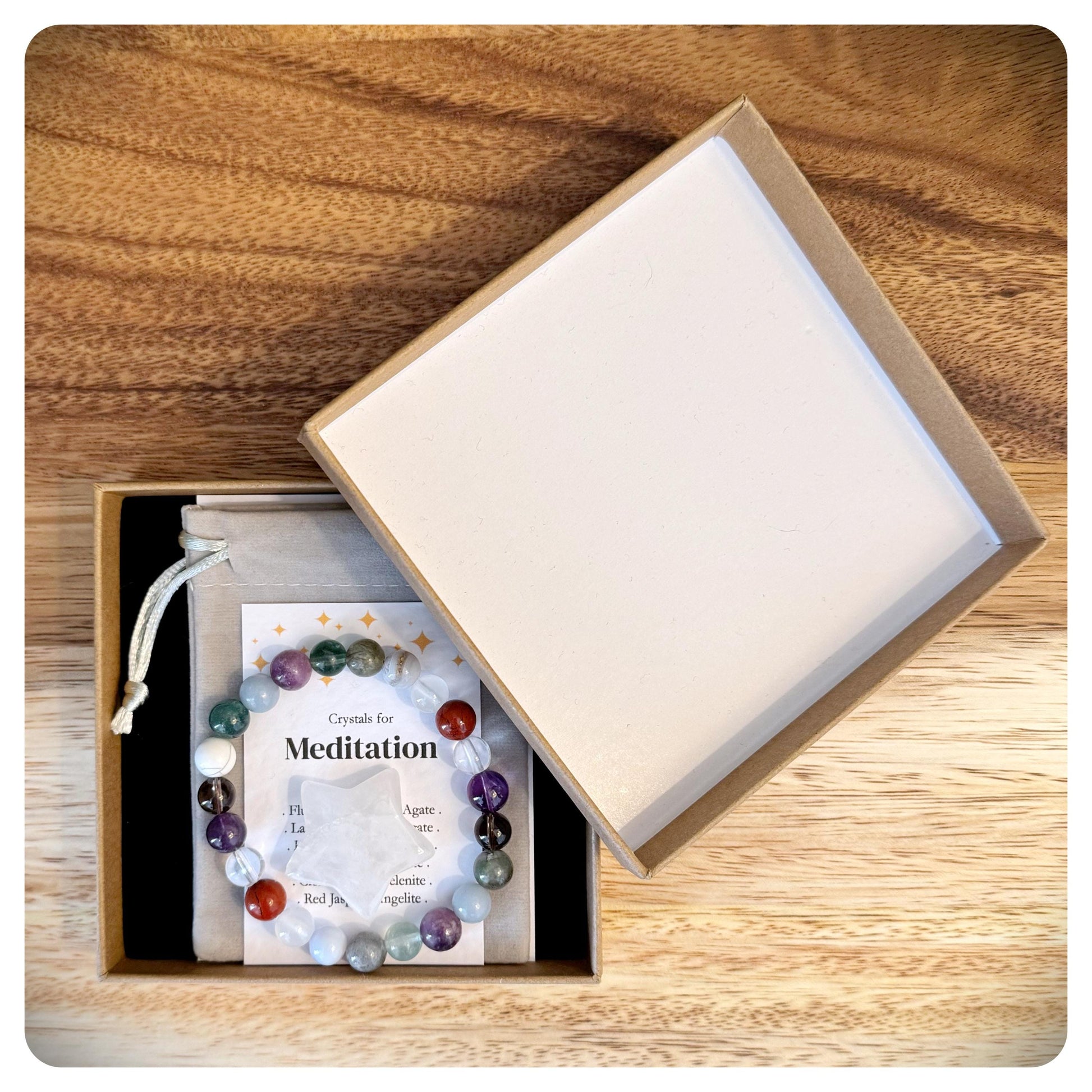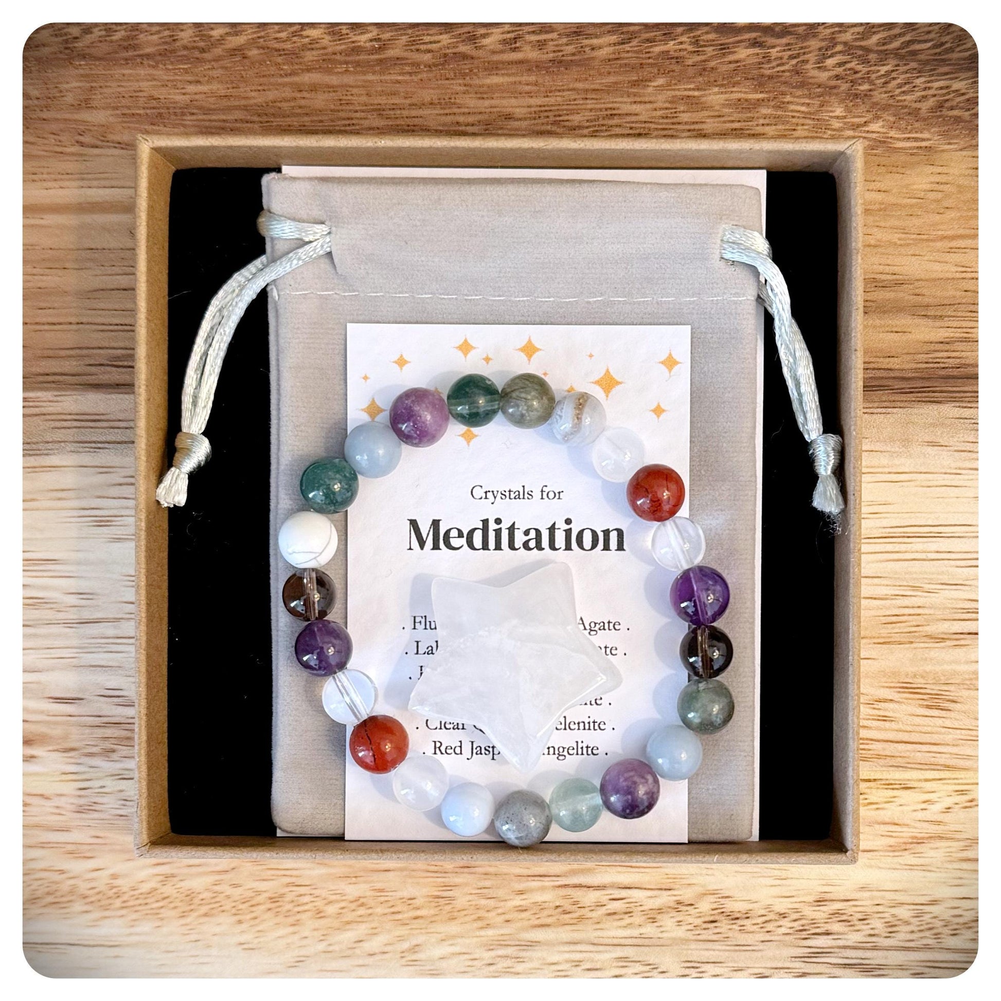 This handmade meditation crystal bracelet is designed to support deep relaxation, inner peace, and spiritual connection. Featuring a selection of grounding and high-vibrational crystals, this bracelet helps to calm the mind, enhance focus, and promote a sense of balance during meditation.