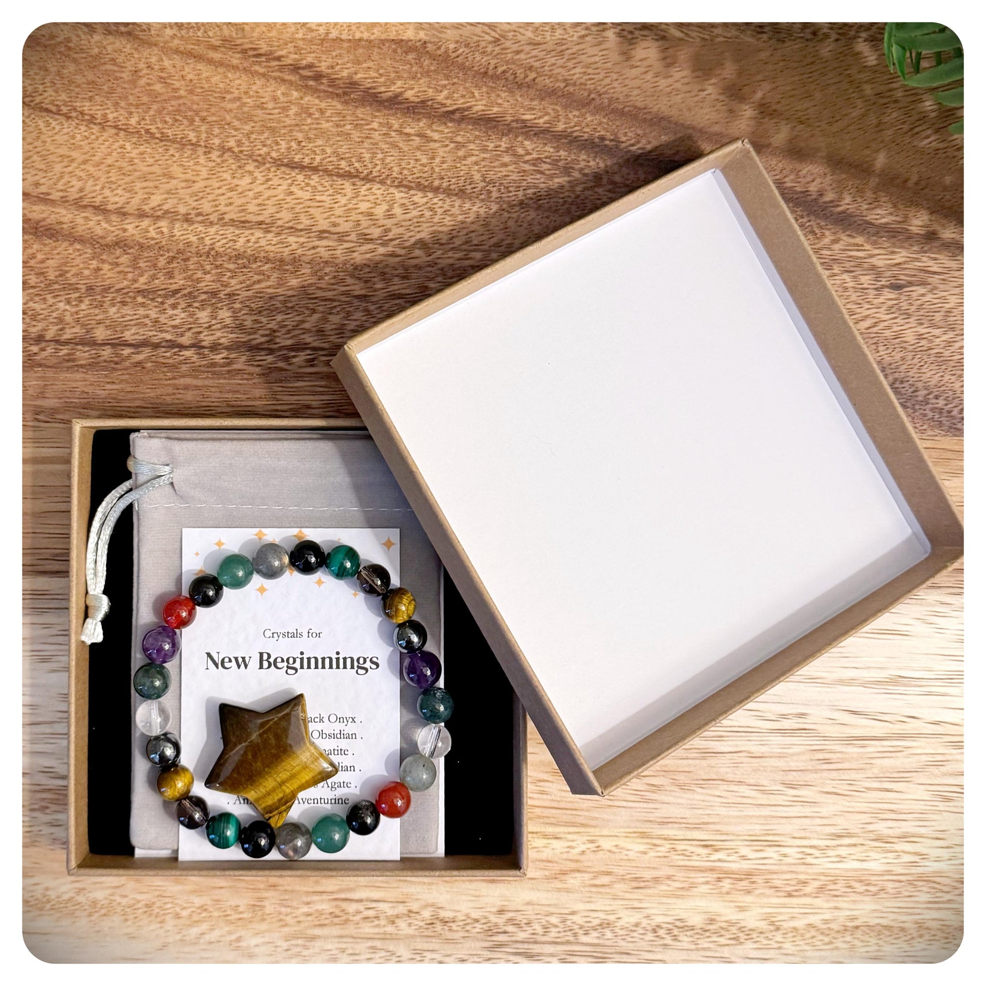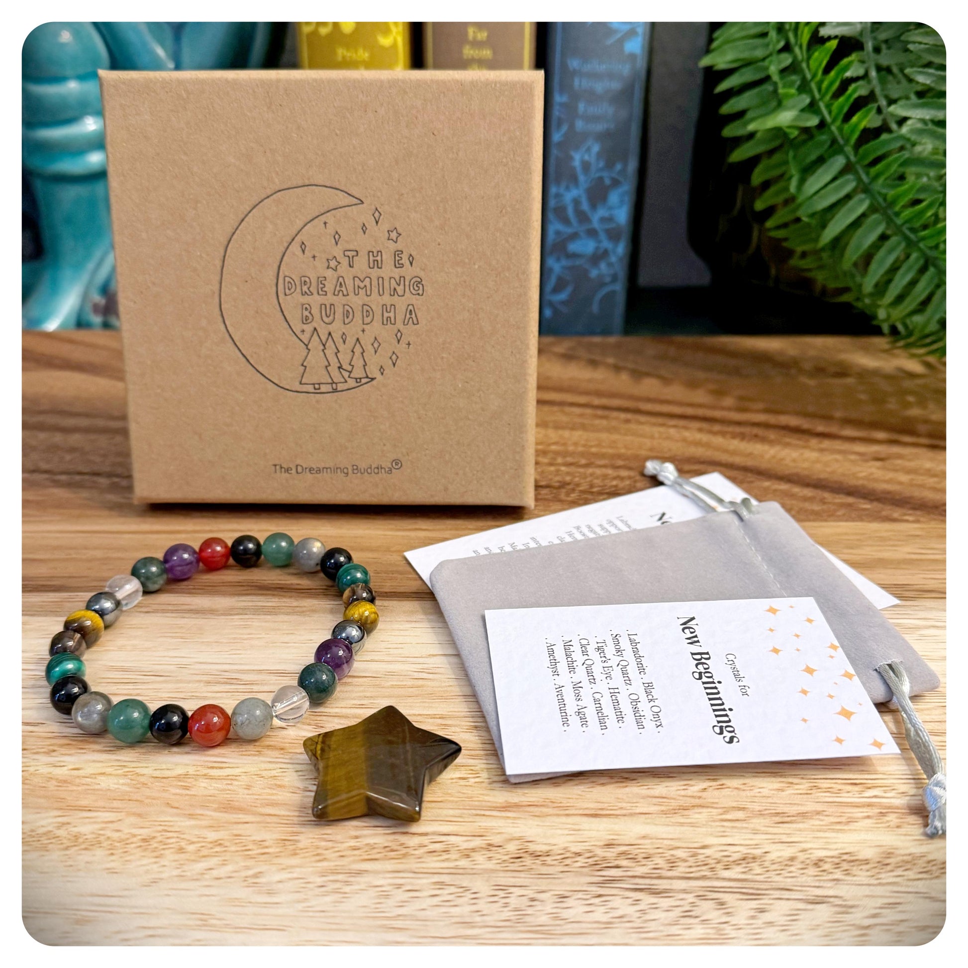 This handmade new beginnings crystal bracelet is designed to support men as they embrace change, transformation, and new opportunities. Carefully crafted with a selection of powerful crystals, it encourages strength, confidence, and positive energy to help navigate life’s transitions.