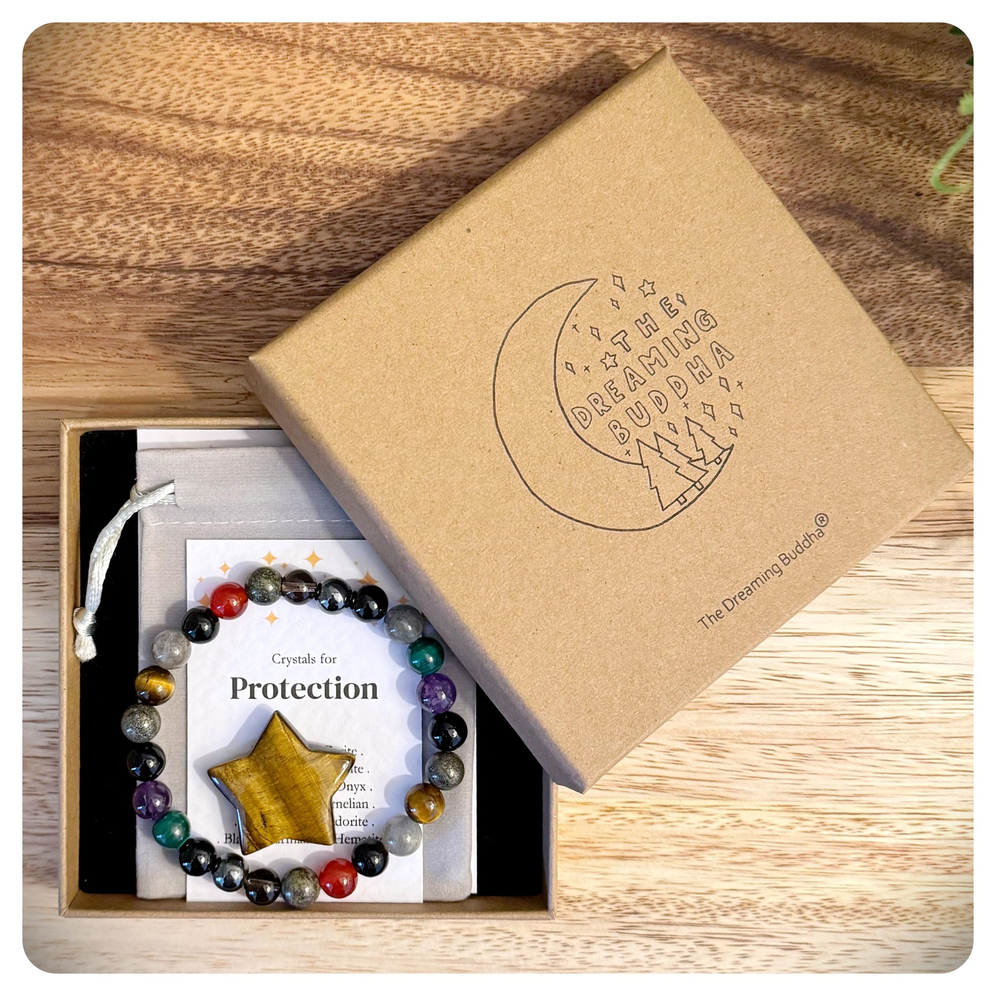 * Packaging: Gift box that can be personalised, crystal star, informational cards and soft storage pouch included.