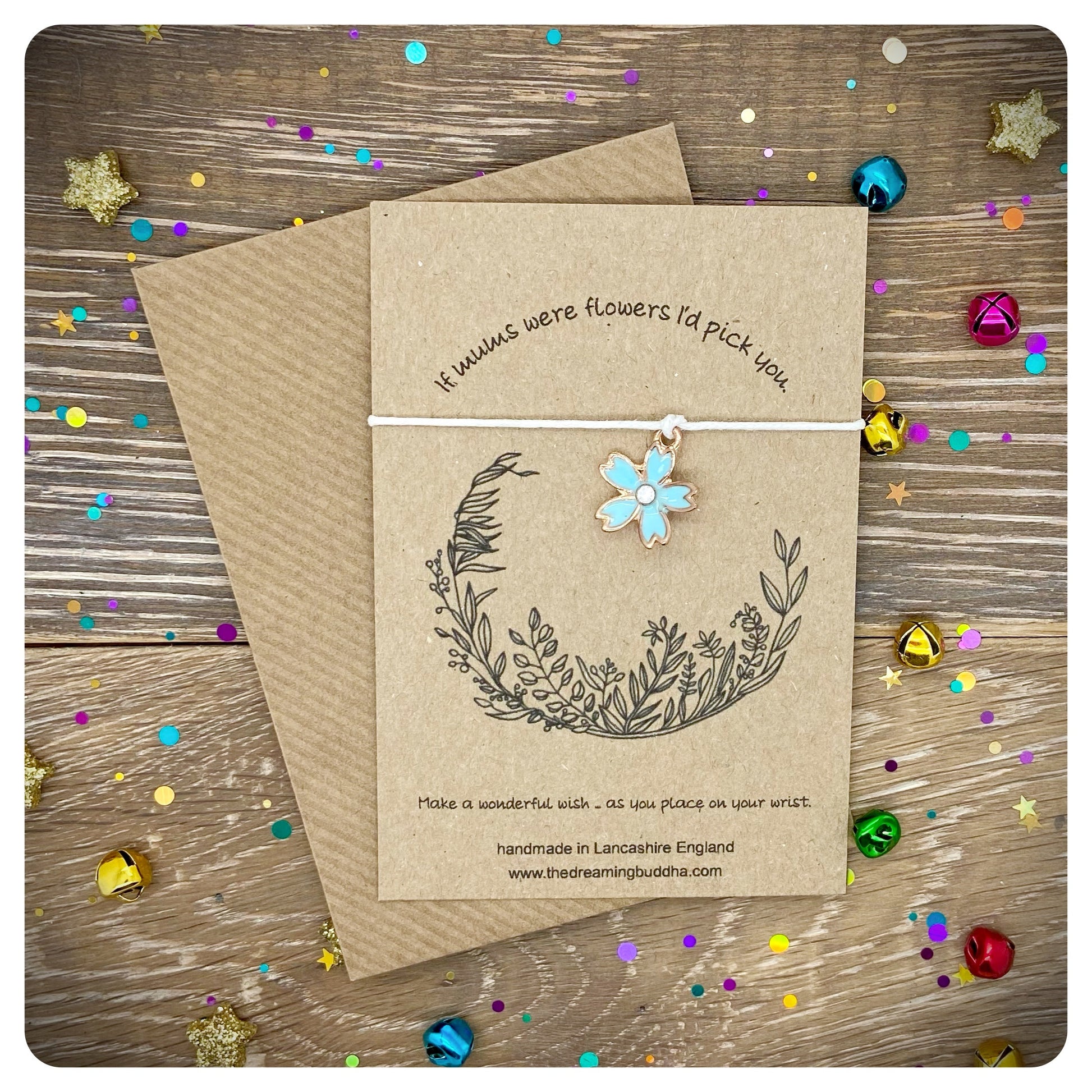 This handmade wish bracelet card reads - If mums were flowers I’d pick you.