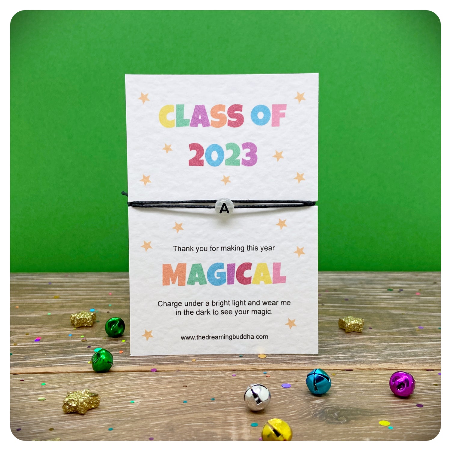 This handmade wish bracelet card reads - Class of 2023 thank you for making this year magical.