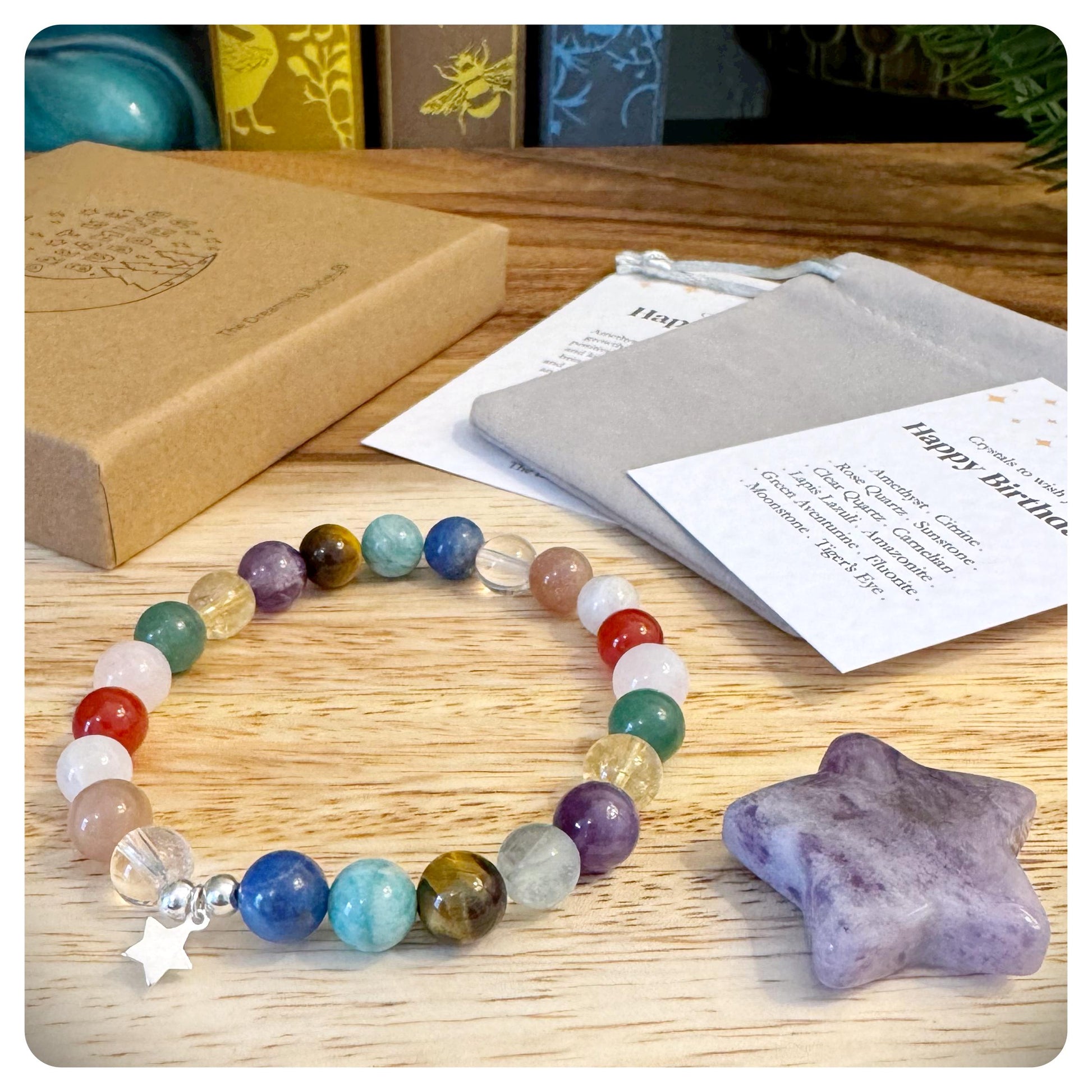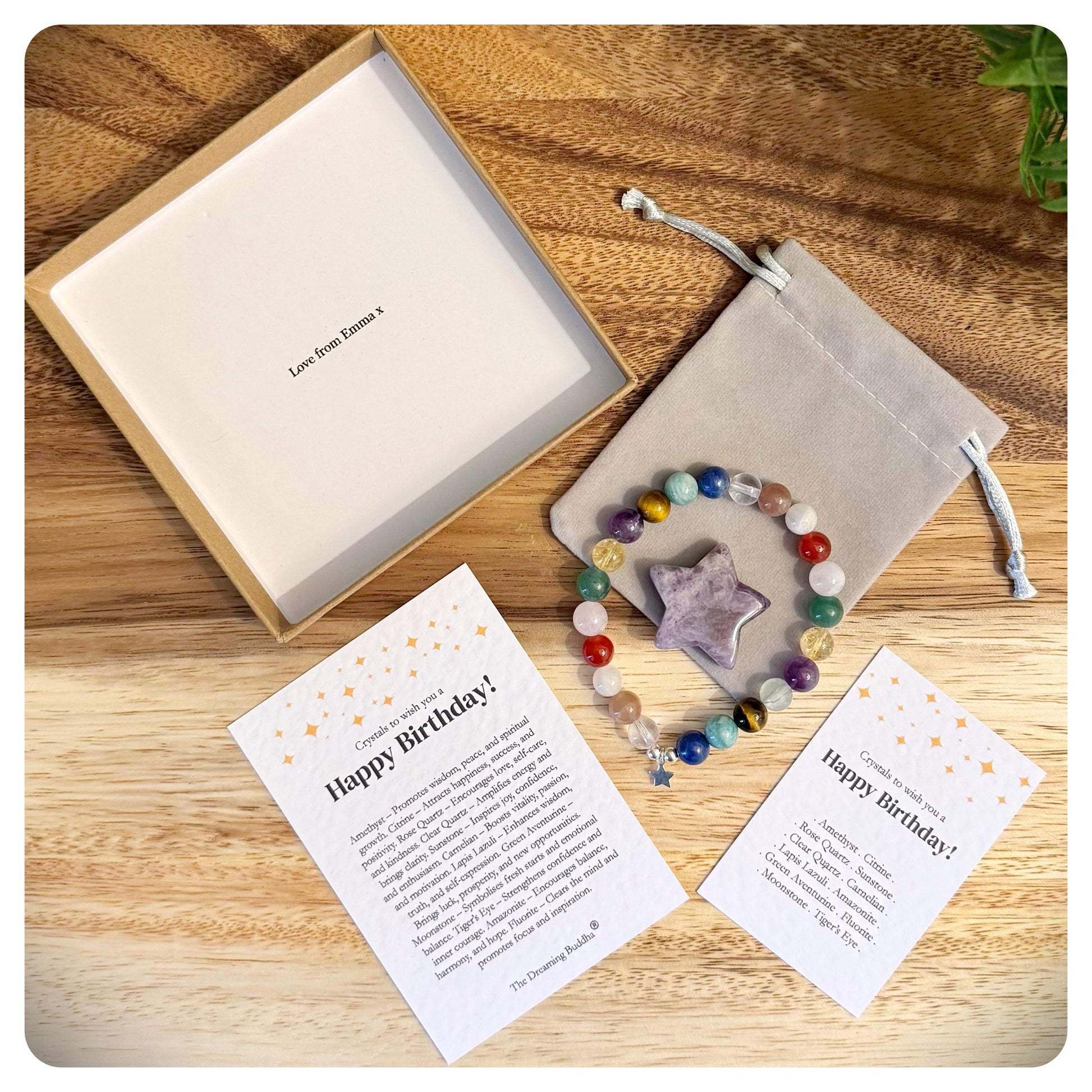 Personalised Happy Birthday Gift, Crystal Birthday Ideas For Her, Celebration Jewellery, Gemstone Birthday Bracelet, Letterbox Birthday Gift