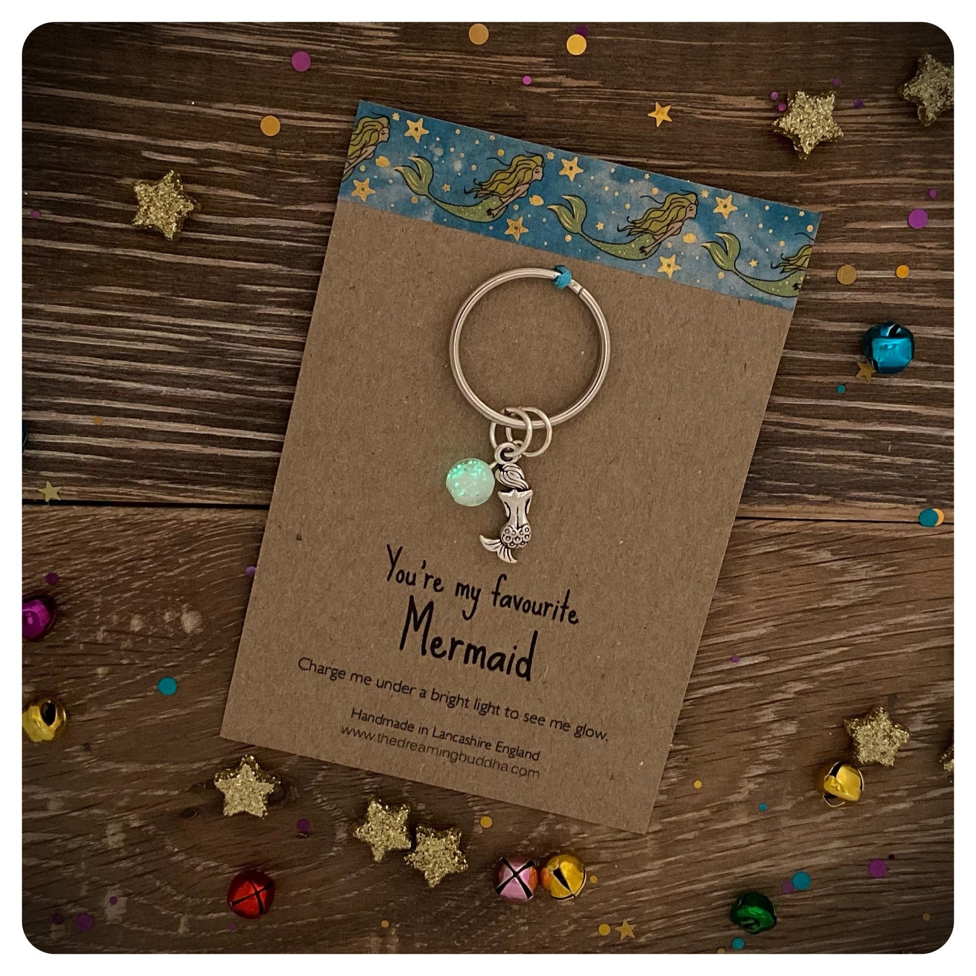 Personalised Mermaid Keychain, Mermaid Keyring With Glow In The Dark Glow Bead