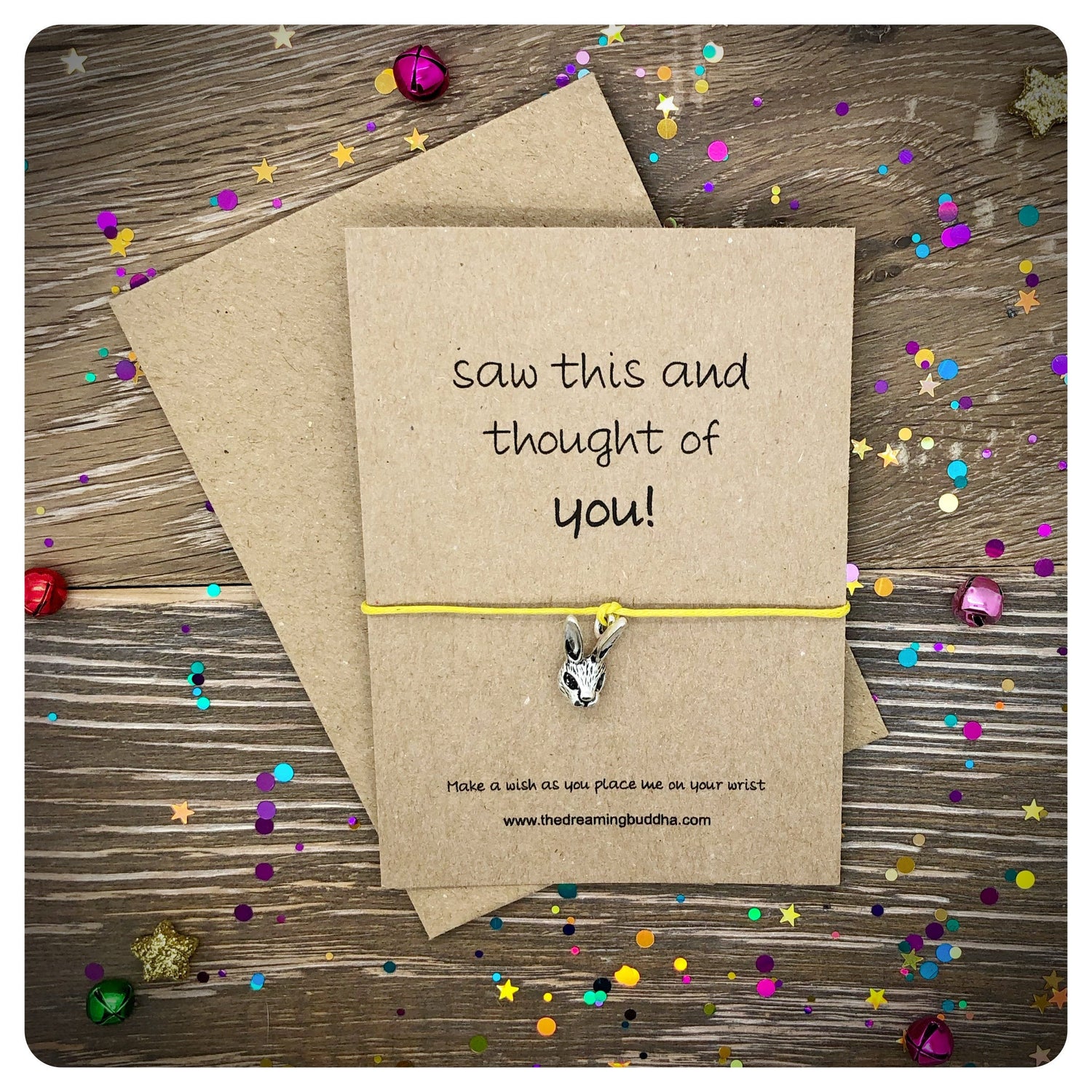 This handmade wish bracelet card reads - Saw this and thought of you!