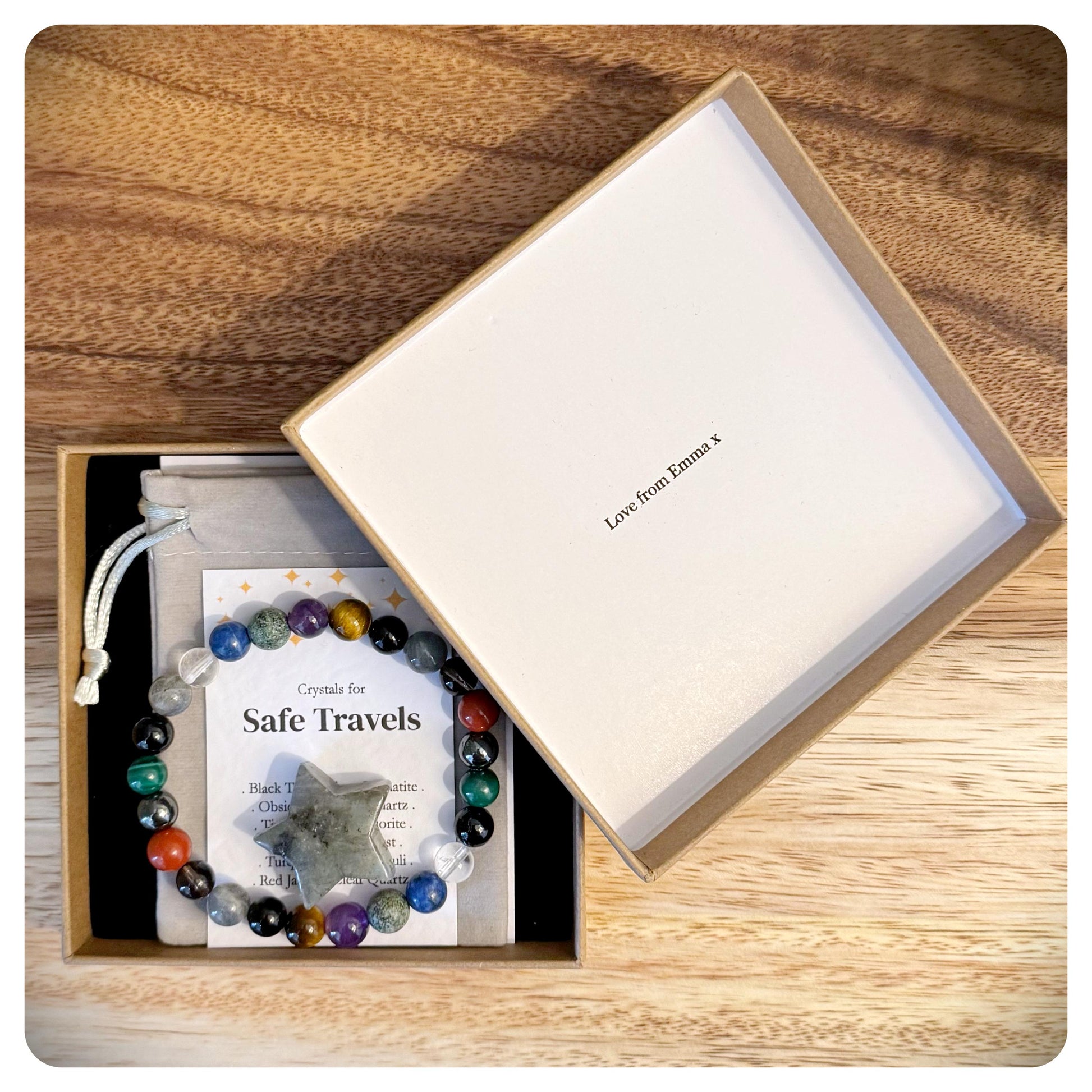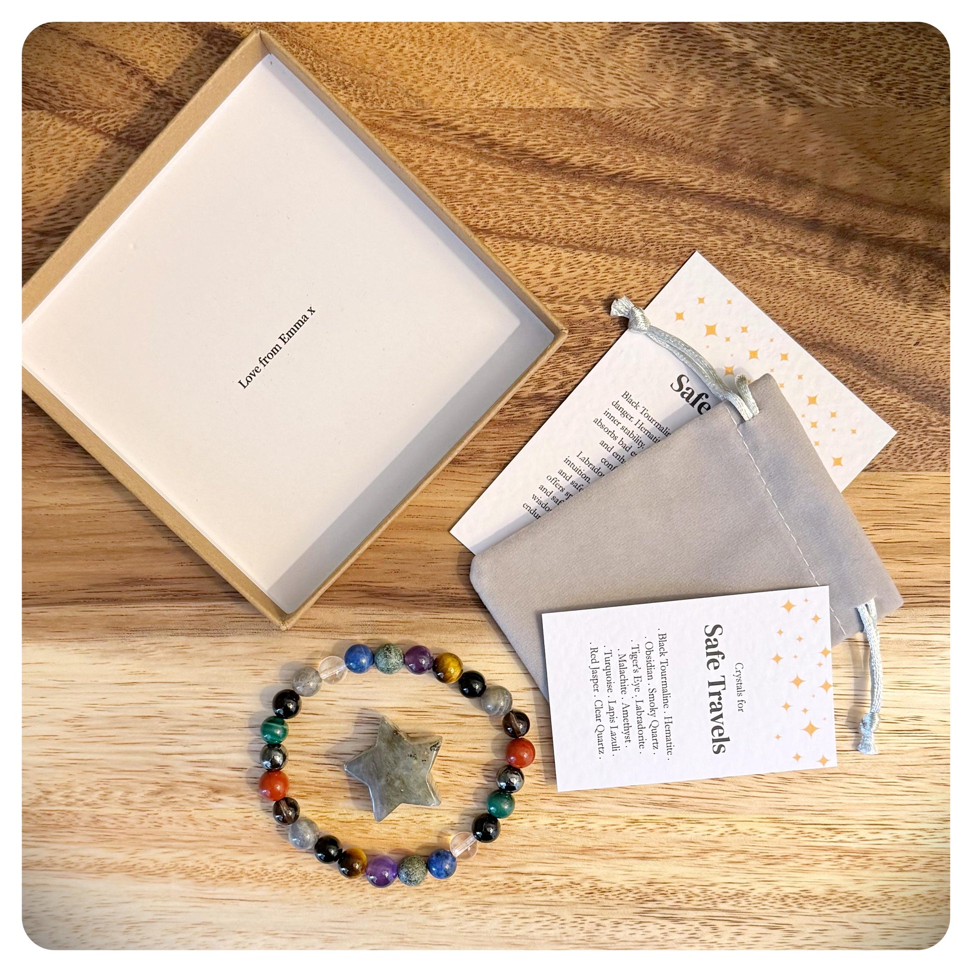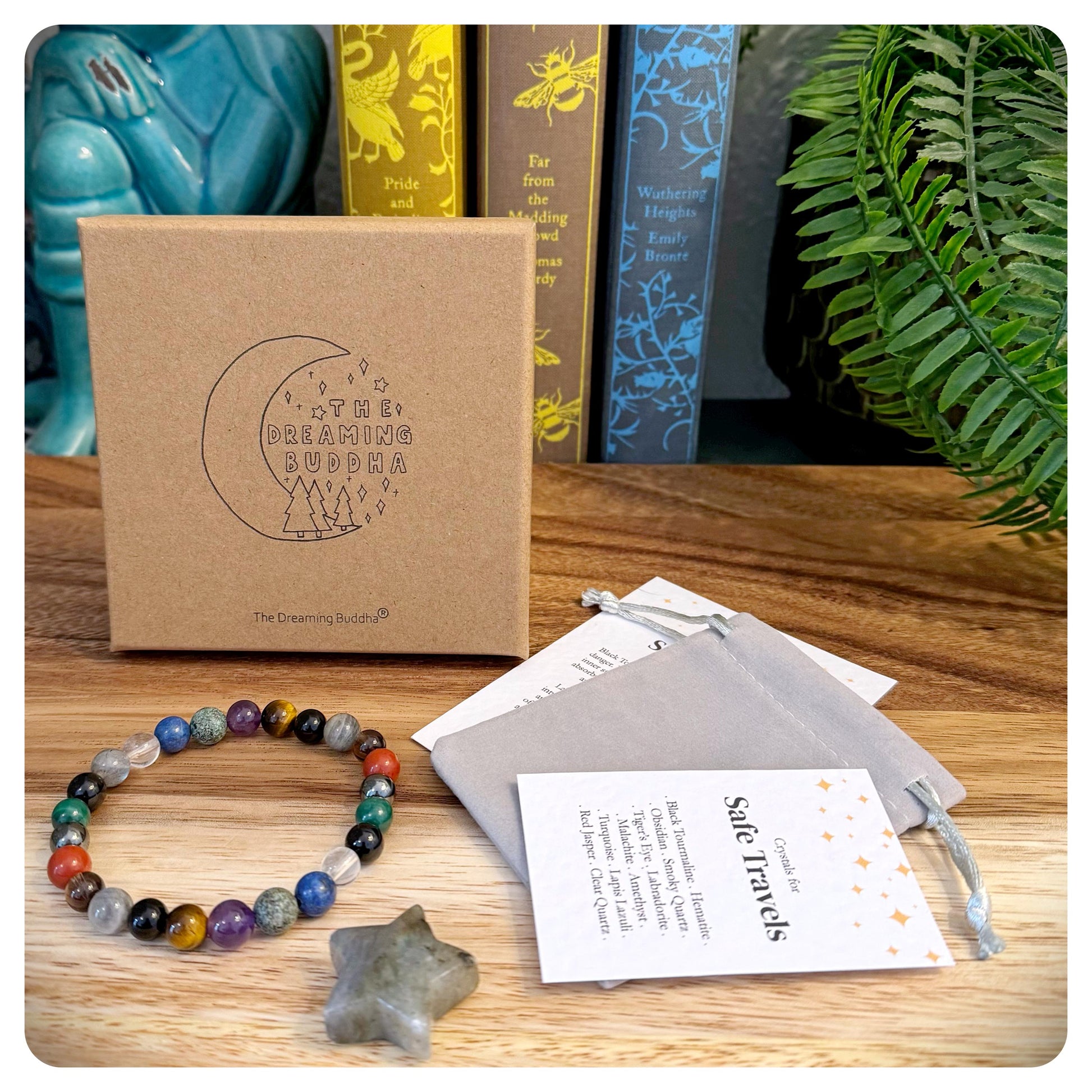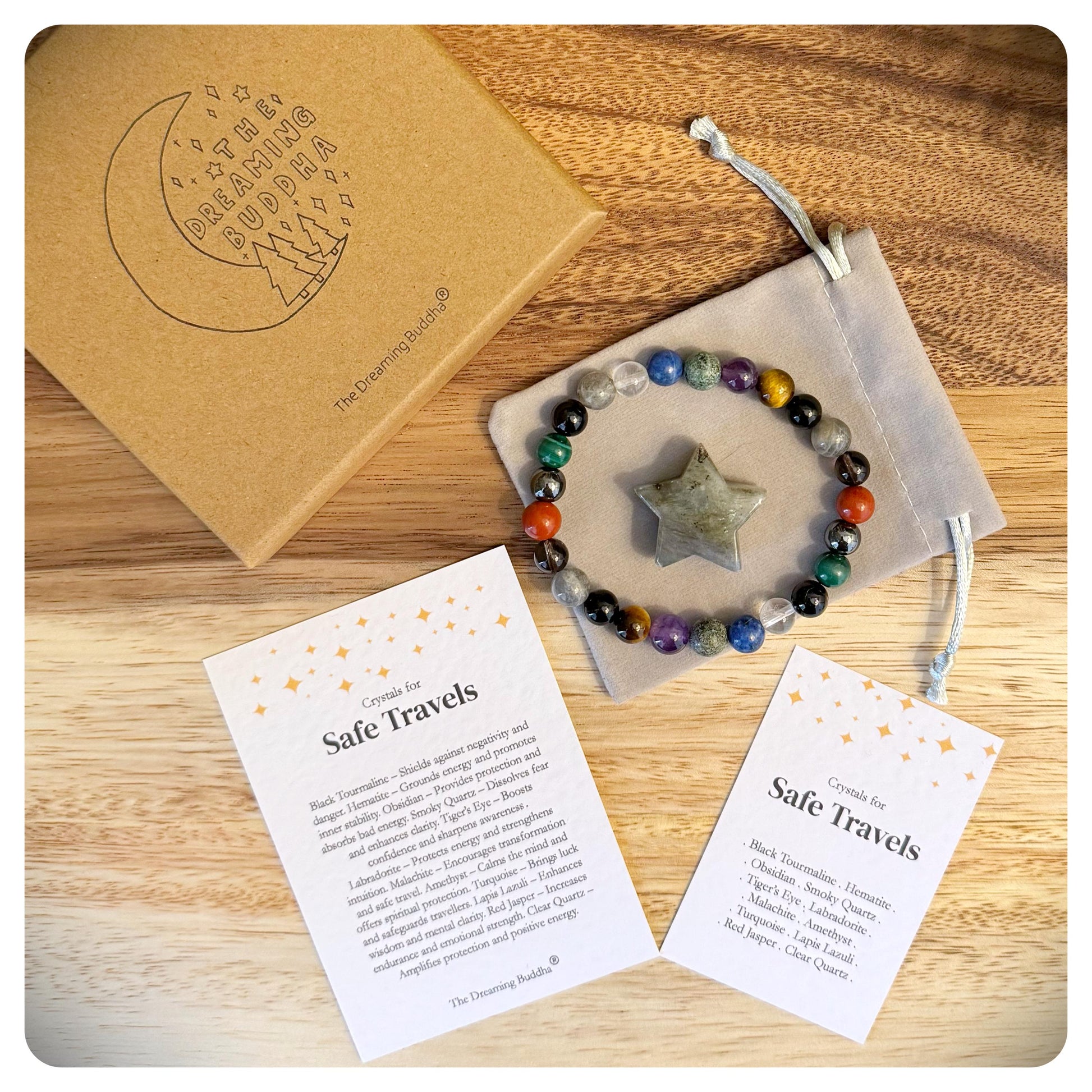 Safe Travel Bracelet for Men, Men's Safe Travel Crystals, Backpacking Bracelet For Him, Gemstone Travel Gift, Sons Travelling Miss You Gift