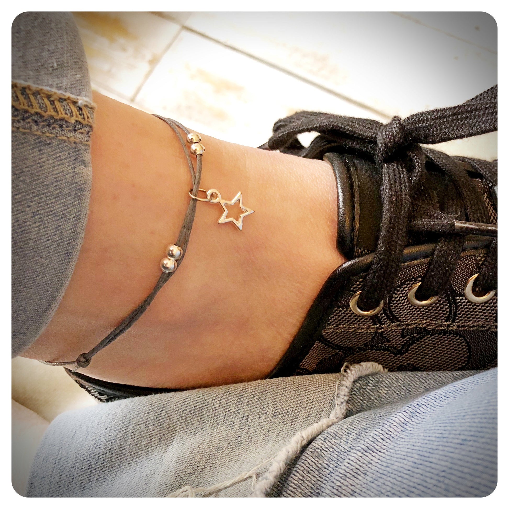Adjustable Cord Anklet, Beaded Star Ankle Bracelet, Beach Jewellery, Festival Accessory