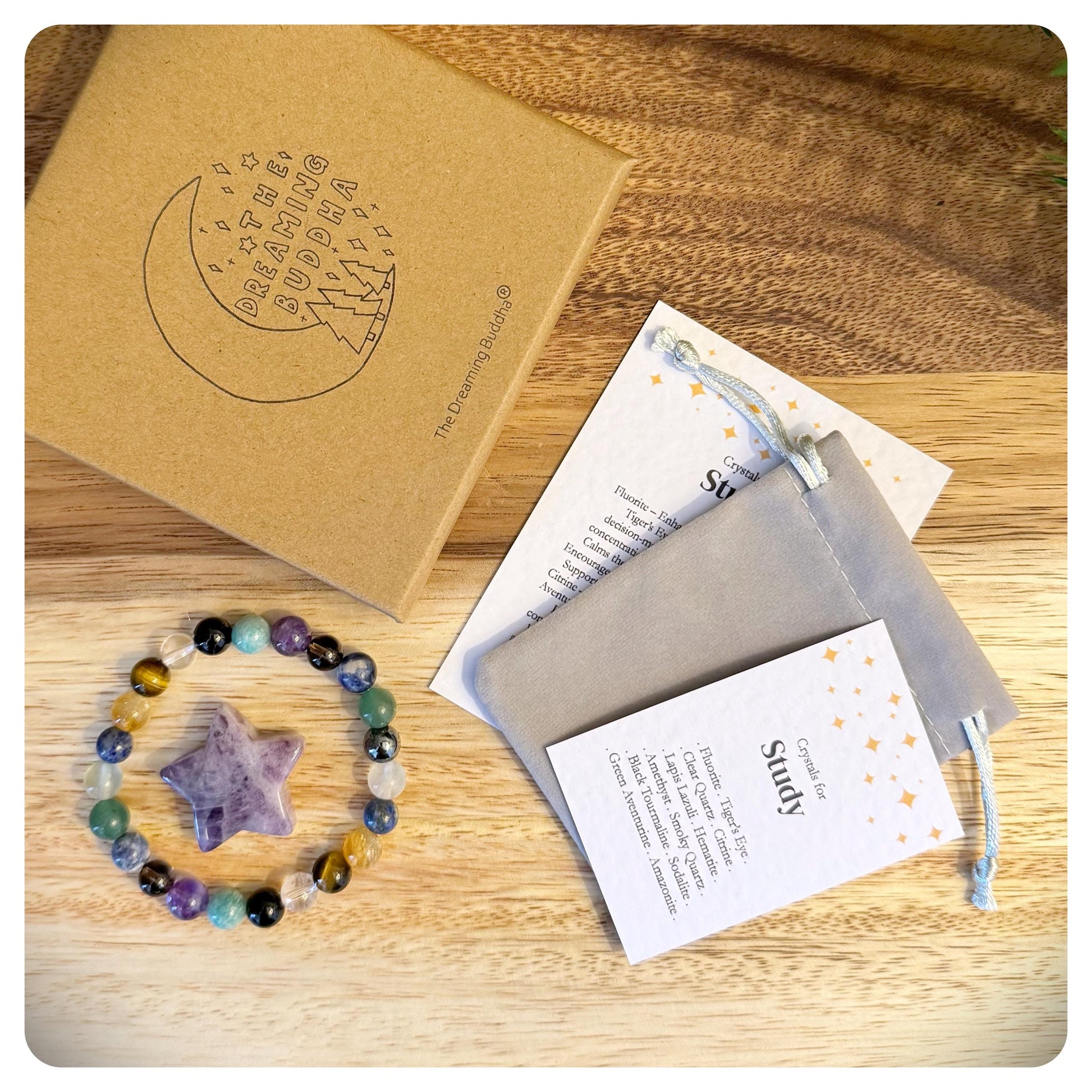 This handmade study crystal bracelet is designed to enhance concentration, mental clarity, and motivation. Made with a powerful selection of natural crystals, this bracelet helps to clear distractions, boost confidence, and support learning.
