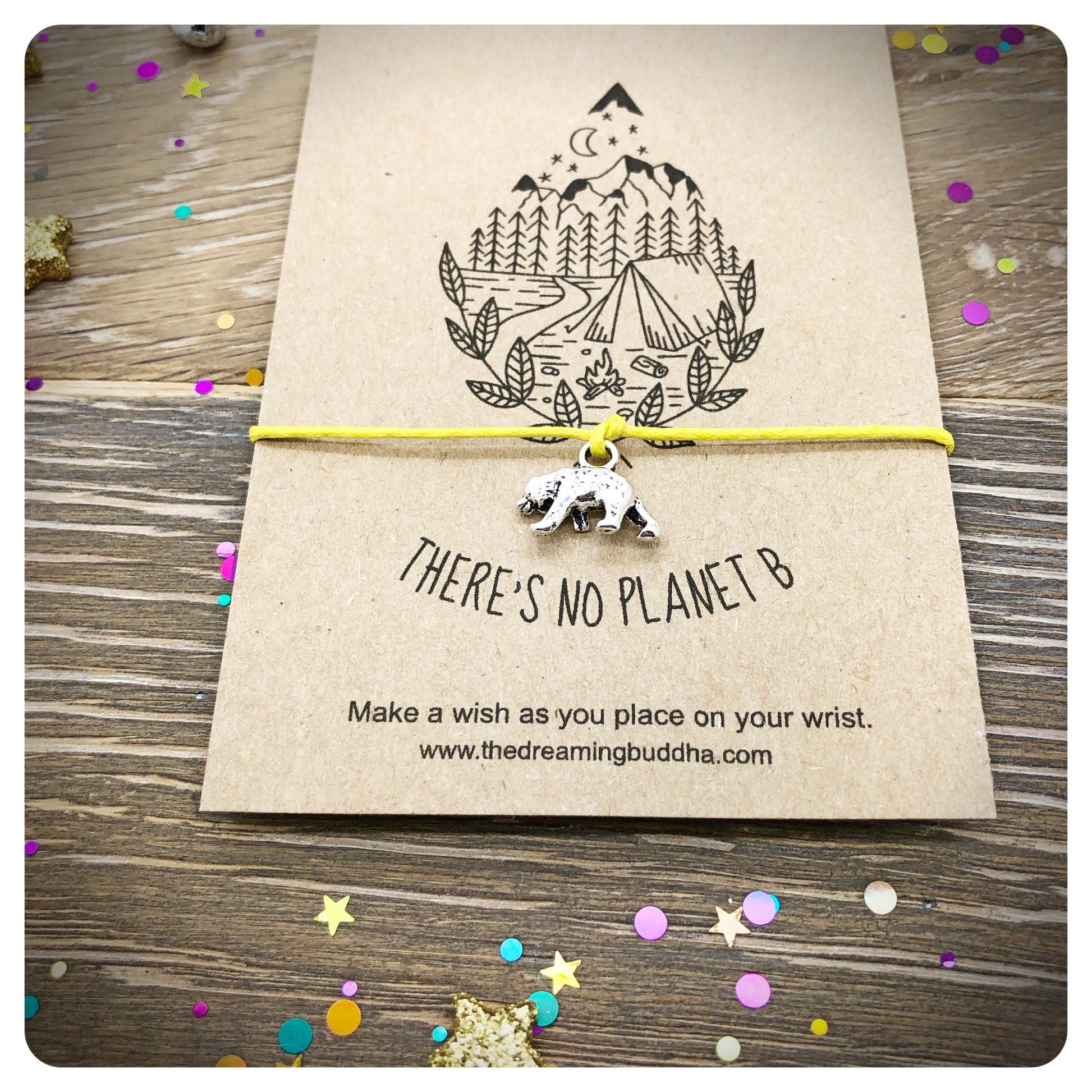 There’s No Planet B Wish Bracelet, Vegan Birthday Gift, Environmental Cord Bracelet, Nature String Bracelet
