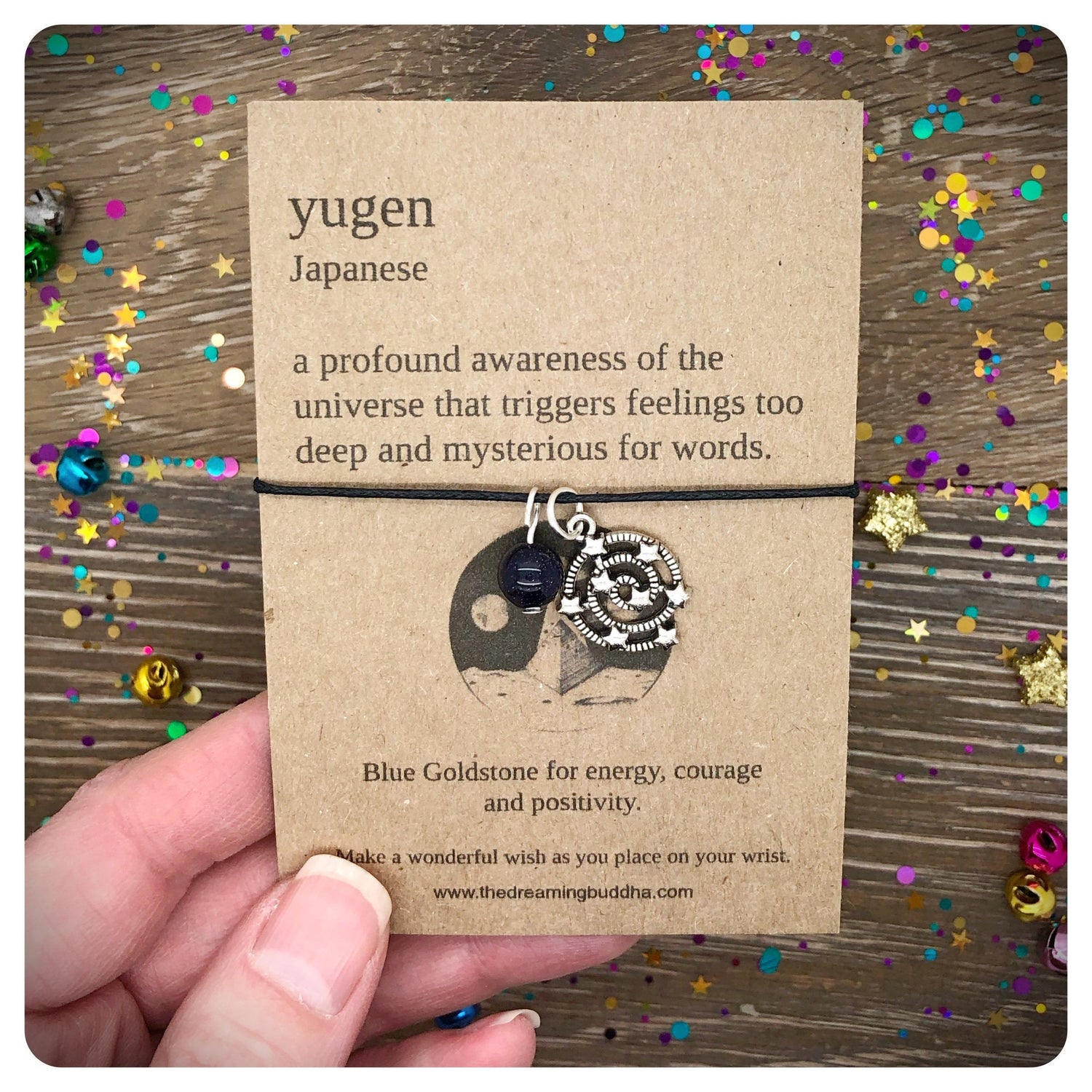 This handmade wish bracelet card reads - Yugan Japanese - a profound awareness of the universe that triggers feelings too deep and mysterious for words.