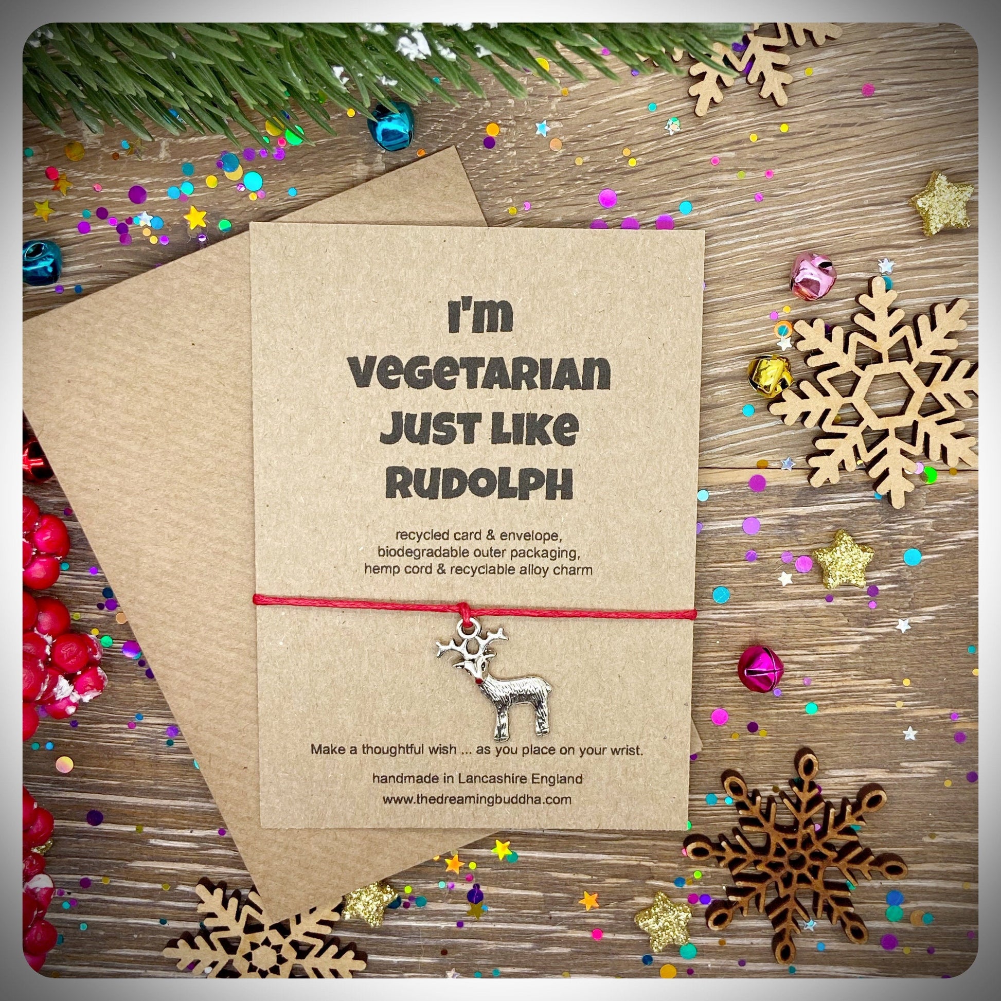 Vegetarian Christmas Wish Bracelet, Vegetarian Christmas Gift, Rudolph Wish Bracelet, Vegetarian Xmas Card, Vegetarian Just Like Rudolph