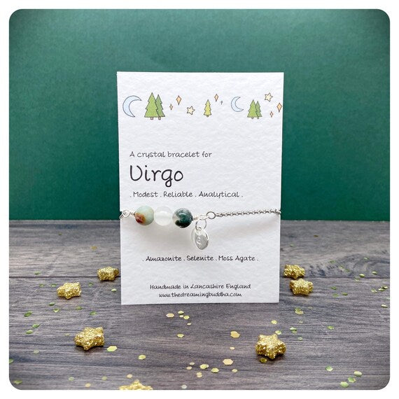 Virgo Zodiac Slider Bracelet, Birthstone Crystal Jewellery, August September Birthday, Zodiac Chain Bracelet, Personalised Star Sign Gift