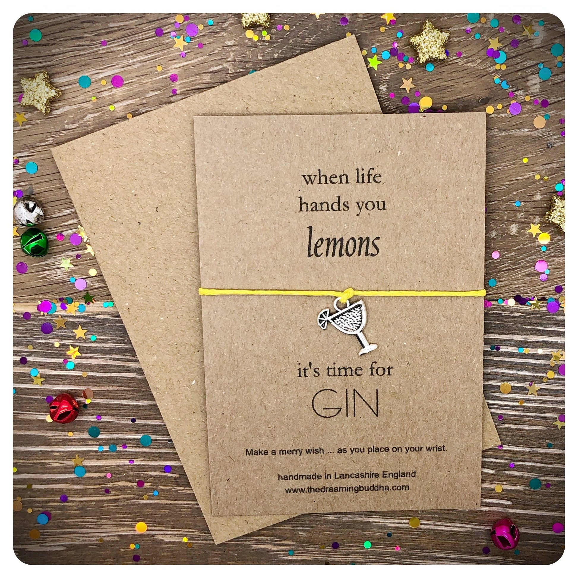 When Life Hands You Lemons Wish Bracelet, Lemons Gin Gift, Positivity Bracelet, Gin Lover Feel Better Card